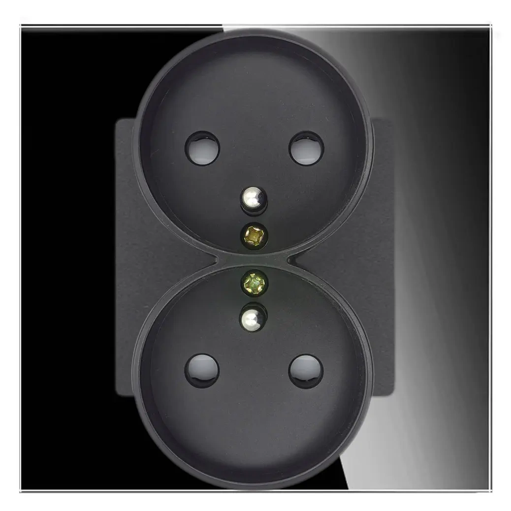 Gniazdko elektryczne ścienne podwójne z uziemieniem typu europejskiego tzw. French pasujące do ramek serii TAWOIA Glass.