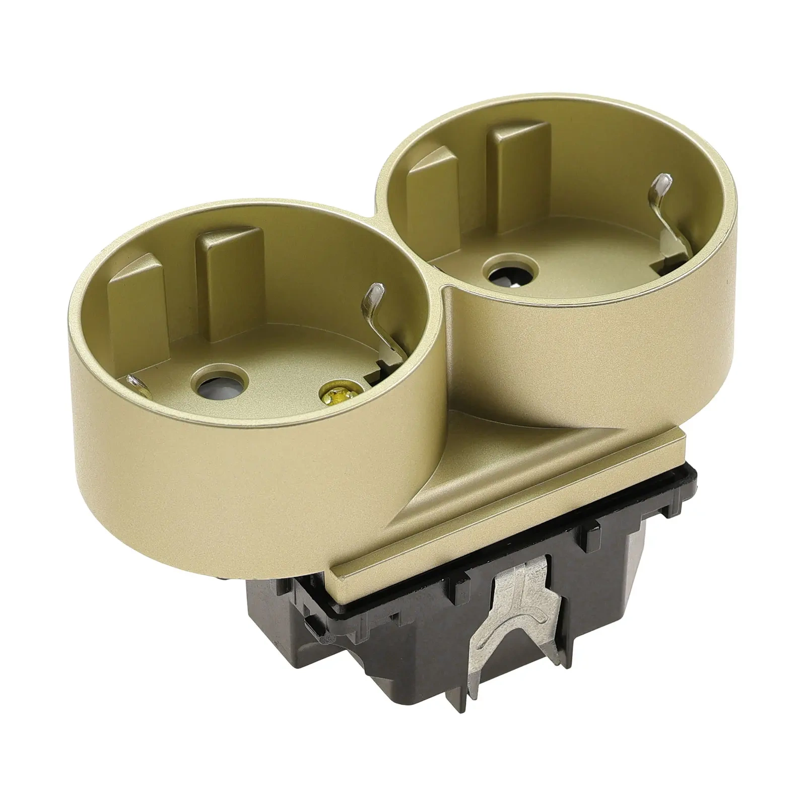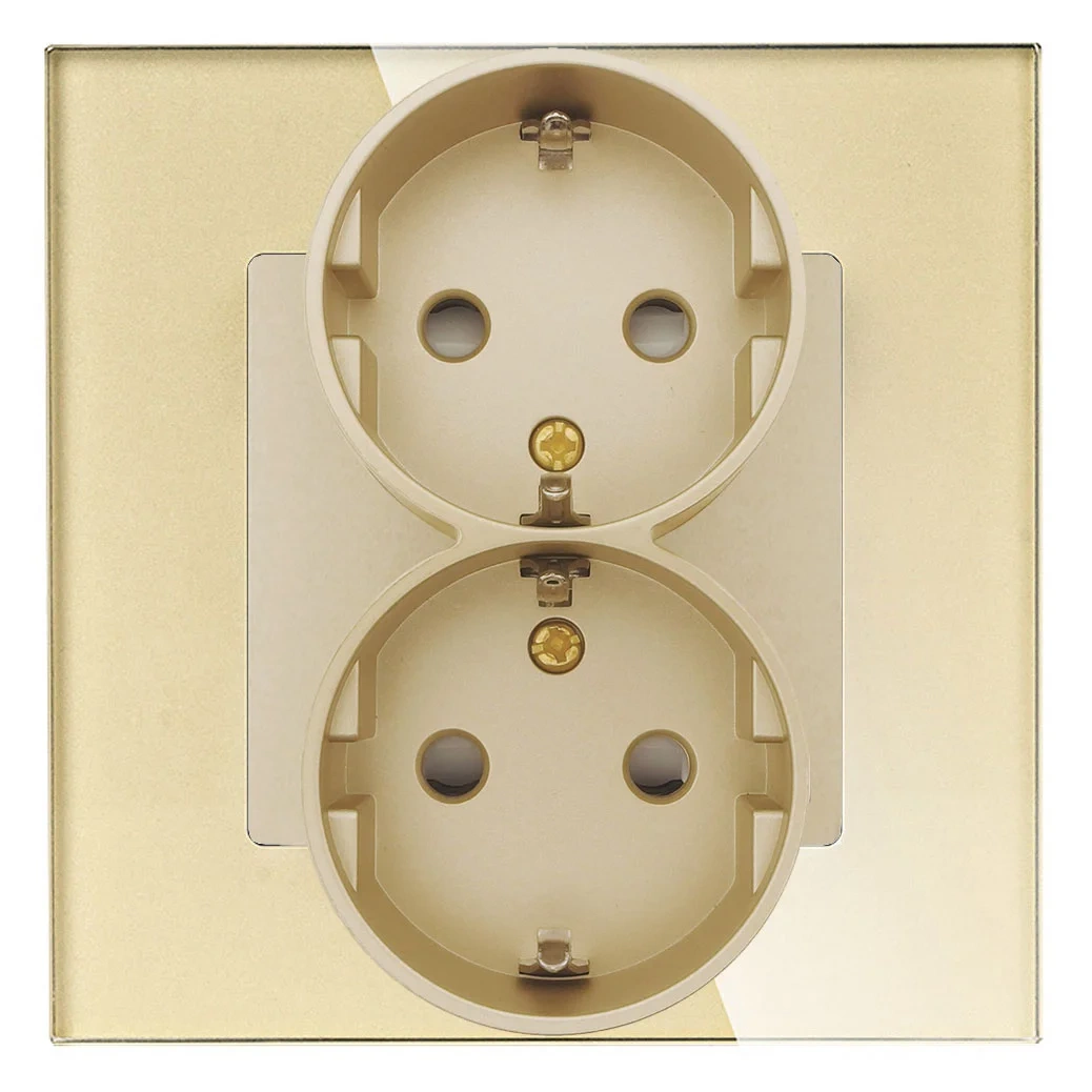 Gniazdko elektryczne ścienne podwójne z uziemieniem typu SCHUKO (z bocznymi stykami uziemiającymi) pasujące do ramek serii TAWOIA Glass.