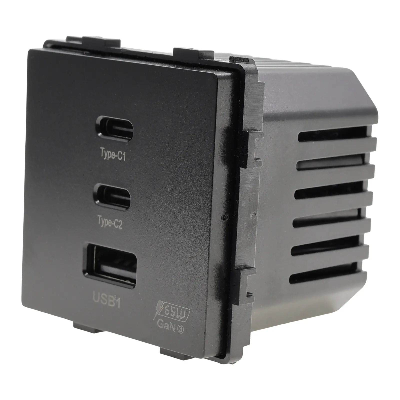 Ładowarka GaN USB 65W 1xUSB-A + 2xUSB-C czarna – moduł do systemu TAWOIA Glass