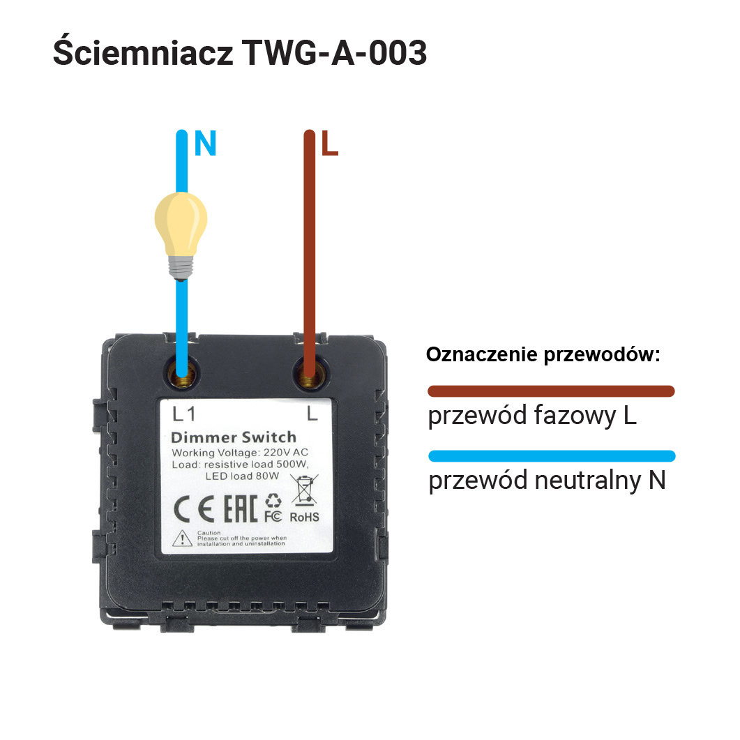- Maksymalne obciążenie: 500 W (dla LED 80 W)