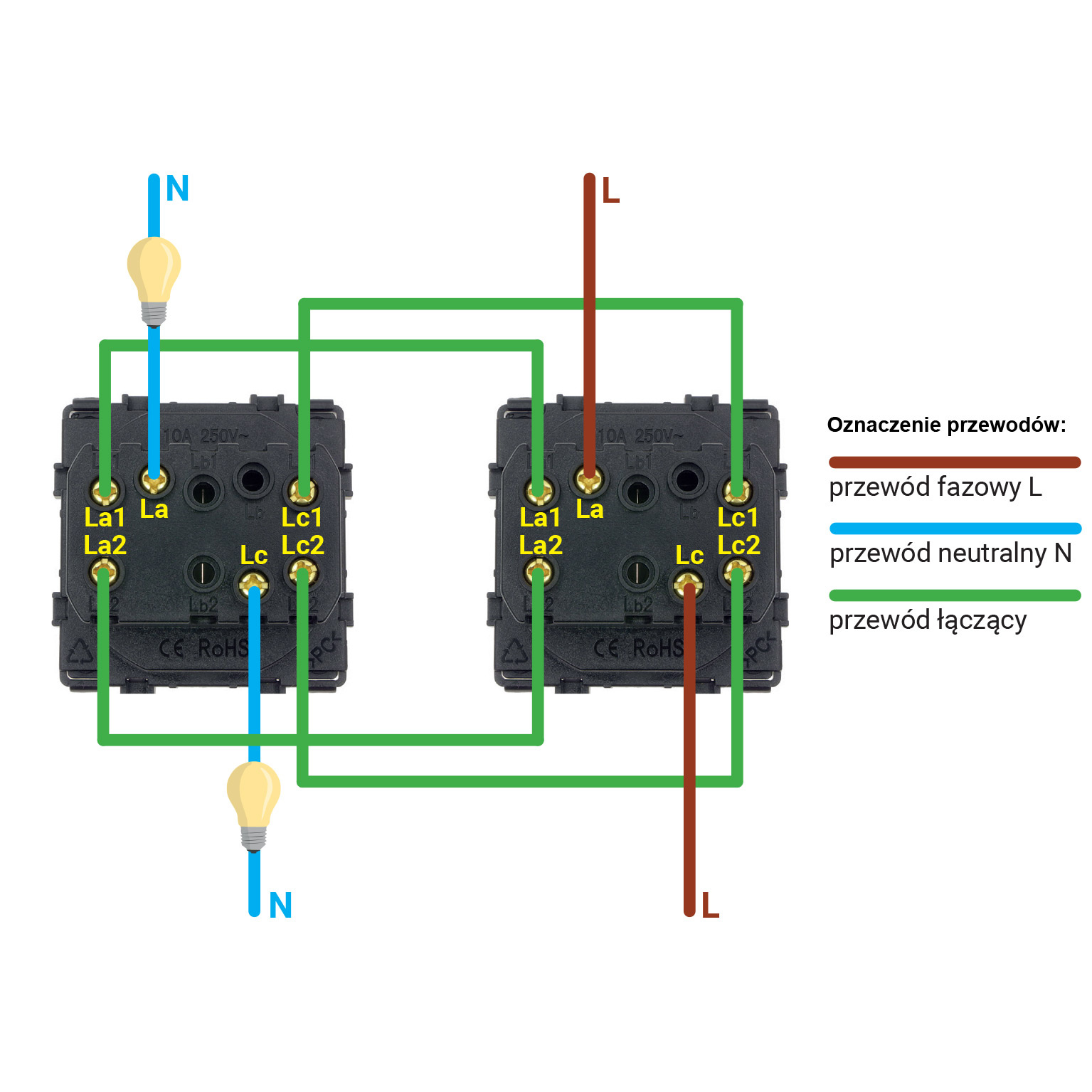 - Produkt: włącznik podwójny, mechaniczny, podtynkowy