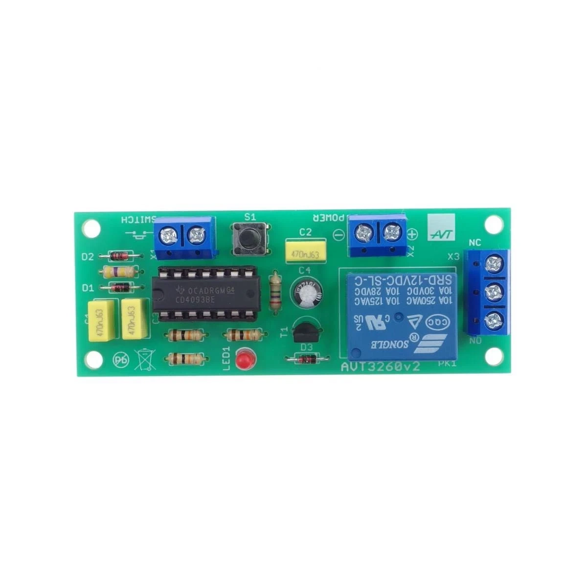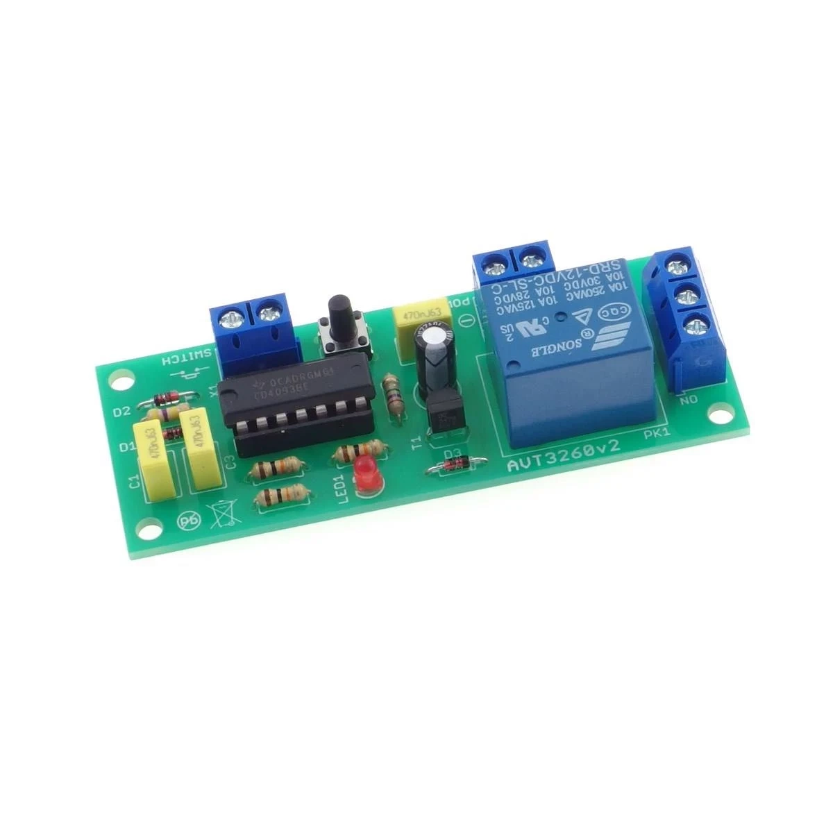 AVT3260 to praktyczny emulator przycisku bistabilnego. Układ służy do – pozornie – prostej czynności, jaką jest włączanie i wyłączanie przekaźnika. Sygnałem, który go przełącza, jest chwilowe zwarcie zarejestrowane na zaciskach złącza. Dzięki temu można zrealizować np. włączanie i wyłączanie światła w pomieszczeniu poprzez użycie czujnika nacisku wbudowanego w próg. Można też zbudować elegancki wyłącznik podświetlenia naciskany palcem, w którym klawisz nie zmienia swojego położenia po przełączeniu, w przeciwieństwie do tradycyjnych przełączników bistabilnych.