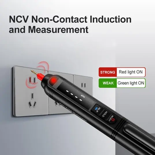 Użyj funkcji NCV, aby sprawdzić, czy badany obiekt lub element znajduje się pod napięciem. Zmniejsz ryzyko porażenia prądem.