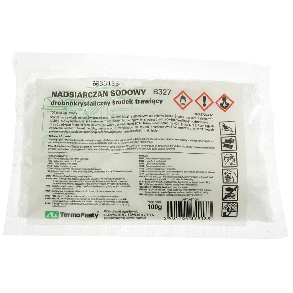 Nadsiarczan sodowy B327 to niezastąpiony preparat umożliwiający równomierne i precyzyjne trawienie obwodów drukowanych. Stanowi nowoczesną alternatywę dla tradycyjnego chlorku żelaza, zapewniając bezpieczeństwo i wysoką jakość pracy.