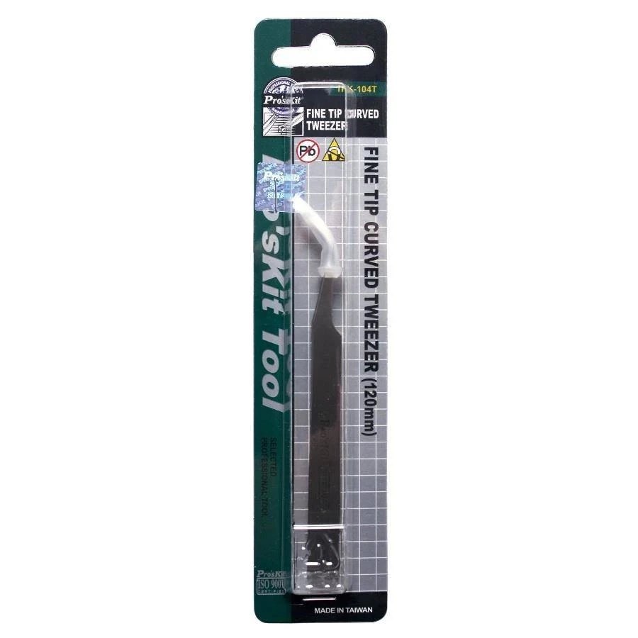 Pęseta do prac precyzyjnych, non-magnetic. Końcówki ostre zagięte. Powierzchnia chwytająca gładka. Długość całkowita 120mm. Wykonana ze stali nierdzewnej. Proskit