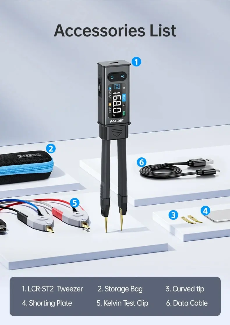 FNIRSI® LCR-ST2 - miernik LCR/ESR 100 kHz w formie pęsety (tweezers) + klips Kelvina
