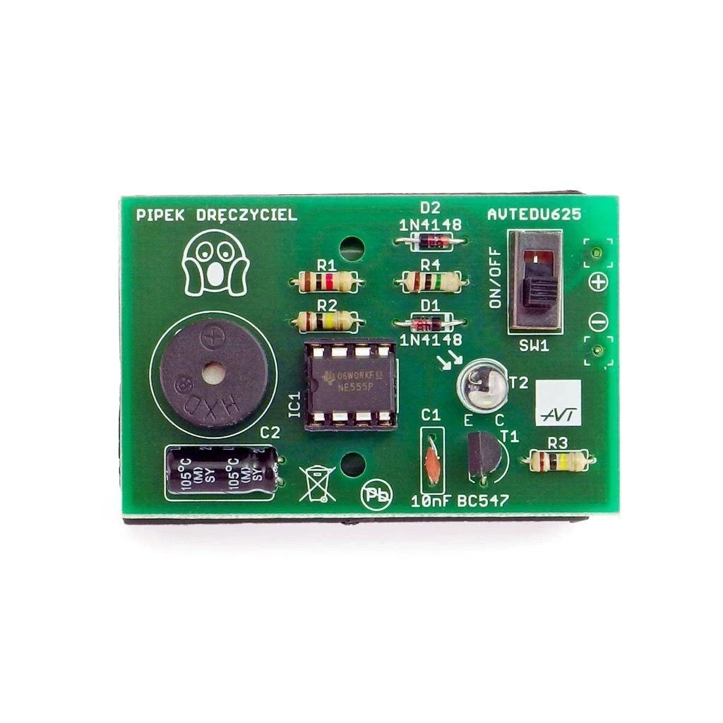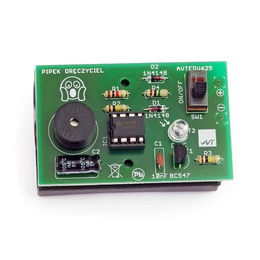 Jedyną funkcją, jaką realizuje nasz pipek jest wydawanie w długich odstępach czasu, krótkich przenikliwych pisków. To w zasadzie wszystko, ale zapomnieliśmy powiedzieć, że piski generowane są tylko wtedy, kiedy układ pozostaje w całkowitej ciemności. A kiedy jest jasno milczy jak grób...