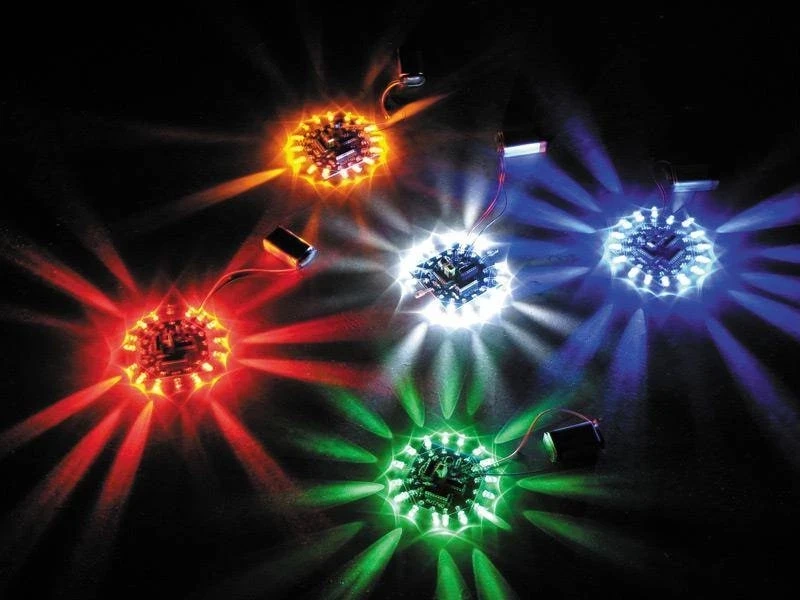 W prosty sposób uzyskano efektowne, obracające się światło - naśladują je przełączane sekwencyjnie diody LED. Układ emituje silne błyski światła i może być atrakcyjnym urozmaiceniem wielu spotkań towarzyskich.