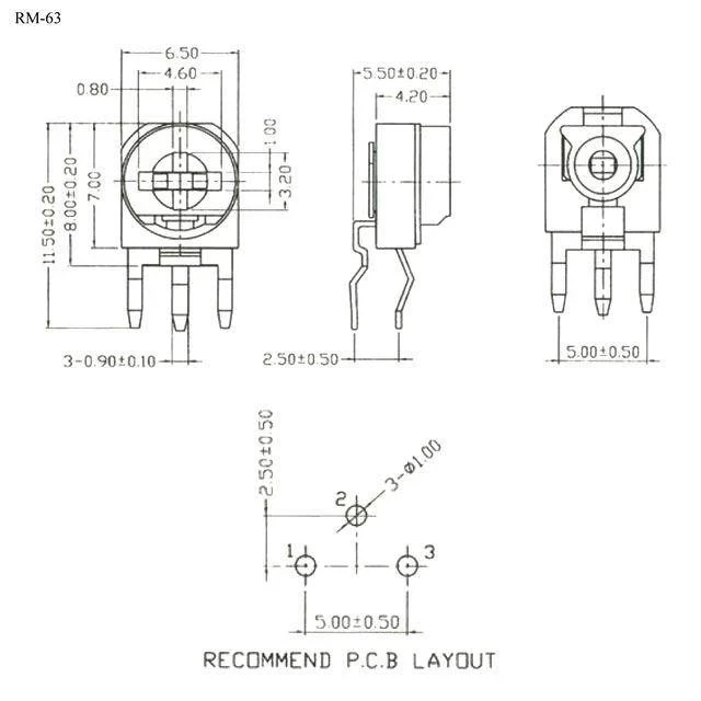 Potencjometr montażowy ceramiczny 500 om, pionowy; obrót 210°; moc 0,1W (przy 50°C); napięcie maksymalne 50V