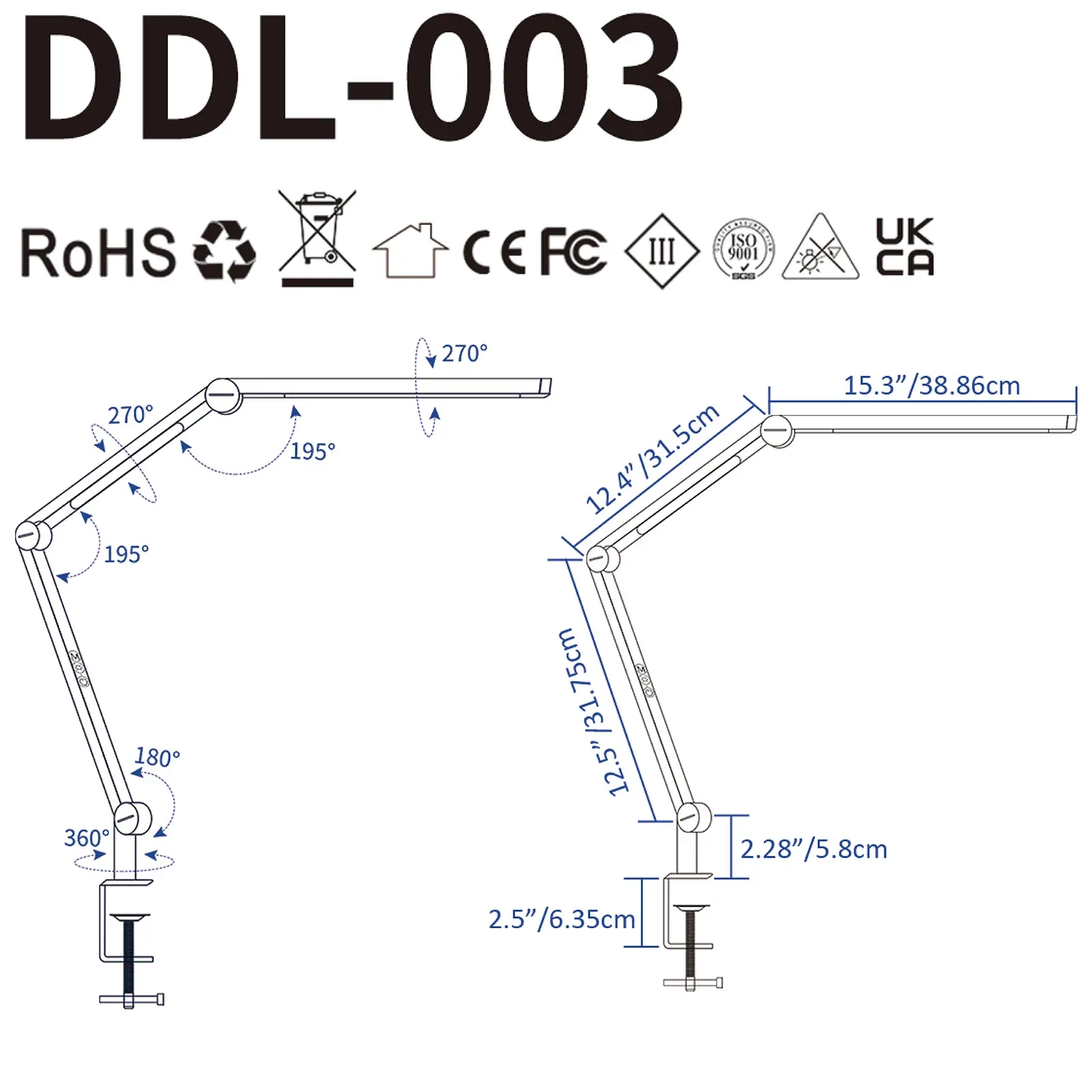 DDL-003 to kompaktowa i solidna lampa LED do pracy przy biurku. Dzięki 154 diodom LED, strumieniowi światła 560 lm i wysokiemu CRI ≥90, zapewnia komfortowe, równomierne oświetlenie. Idealna do pracy z dokumentami, monitorem lub rysunkiem technicznym.