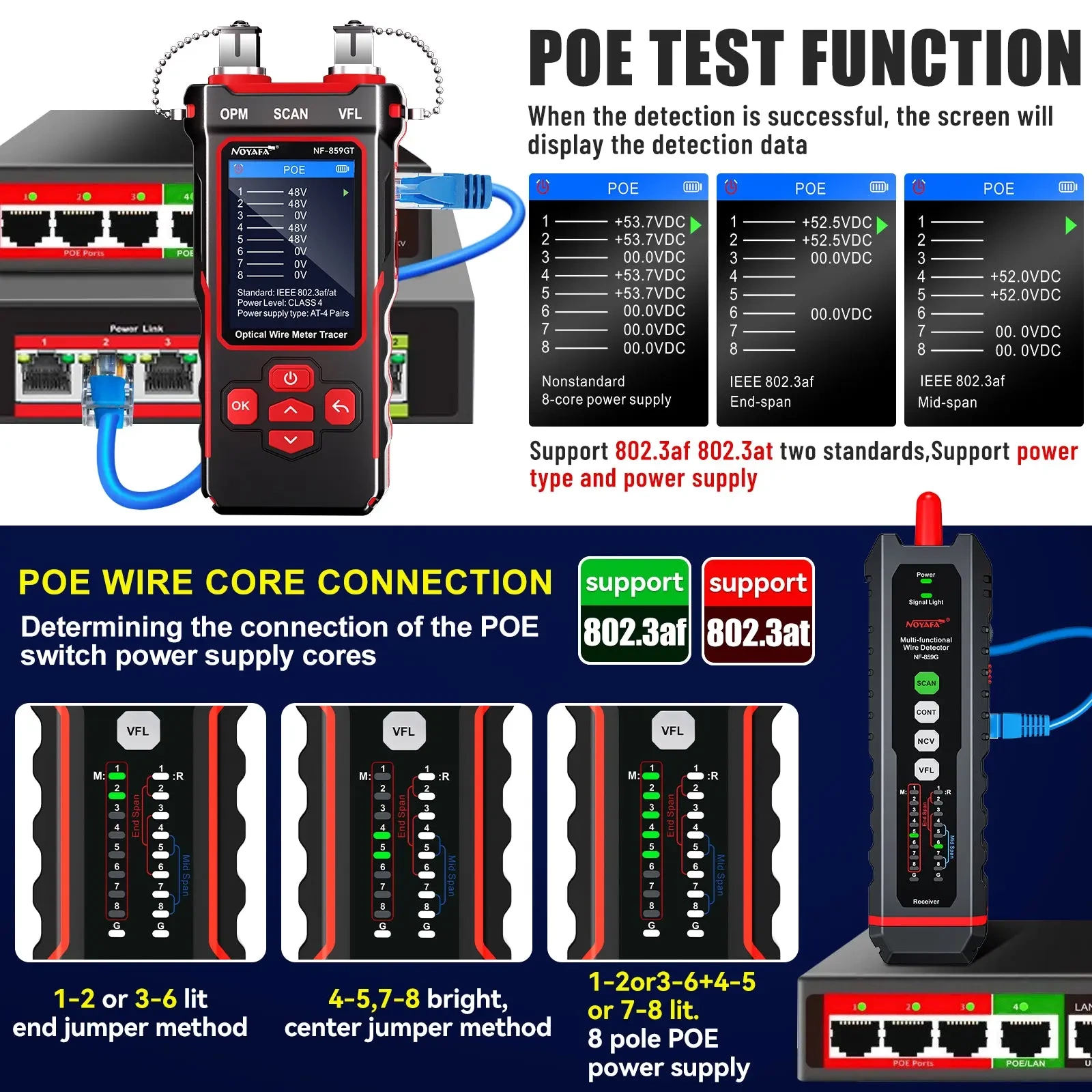 NOYAFA NF-859GT – profesjonalny tester kabli Ethernet i światłowodowych z funkcjami VFL, OPM, PoE oraz zaawansowaną diagnostyką