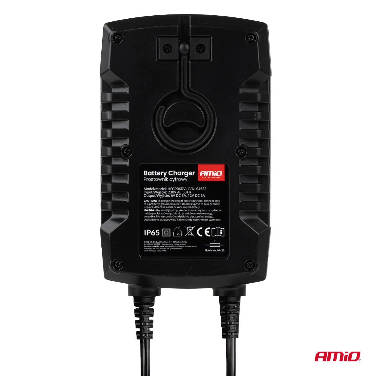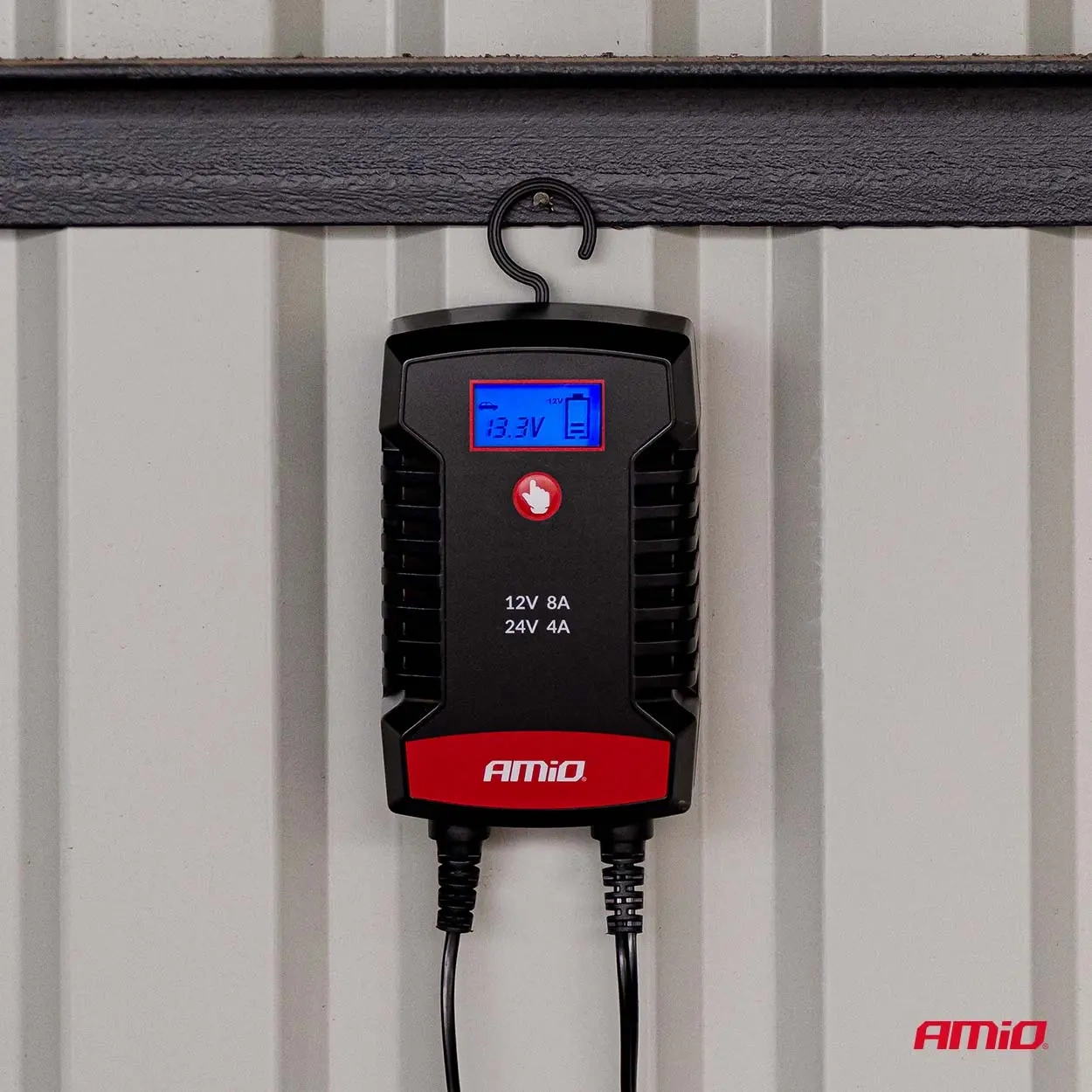 Cyfrowy prostownik AMiO PRO HOOK to nowoczesne urządzenie przeznaczone do ładowania akumulatorów AGM, GEL oraz LiFePo4 (LFP). Dzięki maksymalnemu prądowi ładowania 6 A i obsłudze napięć 6V i 12V, zapewnia szybkie, bezpieczne i precyzyjne uzupełnianie energii akumulatorów w pojazdach osobowych, motocyklach, łodziach i małym sprzęcie profesjonalnym. Ładowarka z funkcją podtrzymywania napięcia z wbudowanym hakiem do podwieszenia pod maską. Posiada szybkozłączkę oraz dodatkowe konektory oczkowe w zestawie. Optymalna do ładowania akumulatorów motocyklowych i samochodów osobowych z silnikami benzynowymi oraz diesla o małej pojemności, dodatkowo posiada dedykowaną funkcję ładowania akumulatorów LFP.