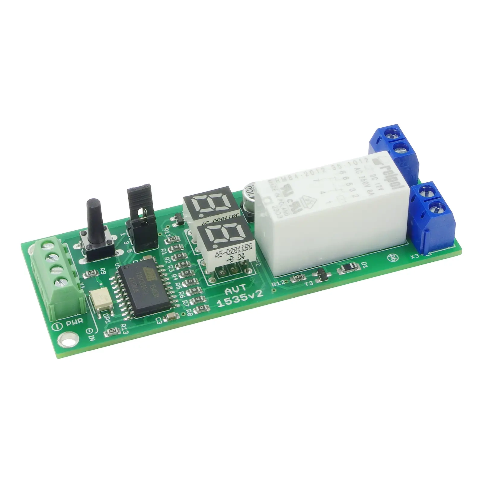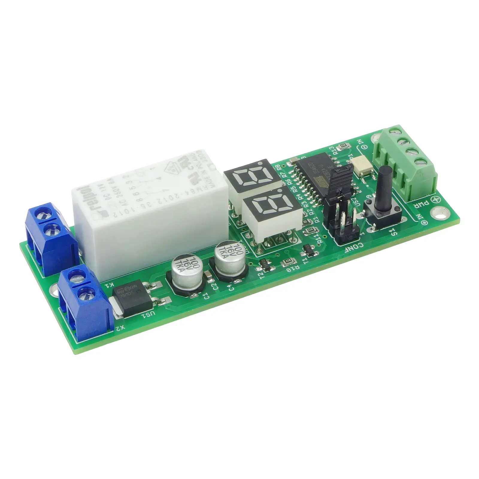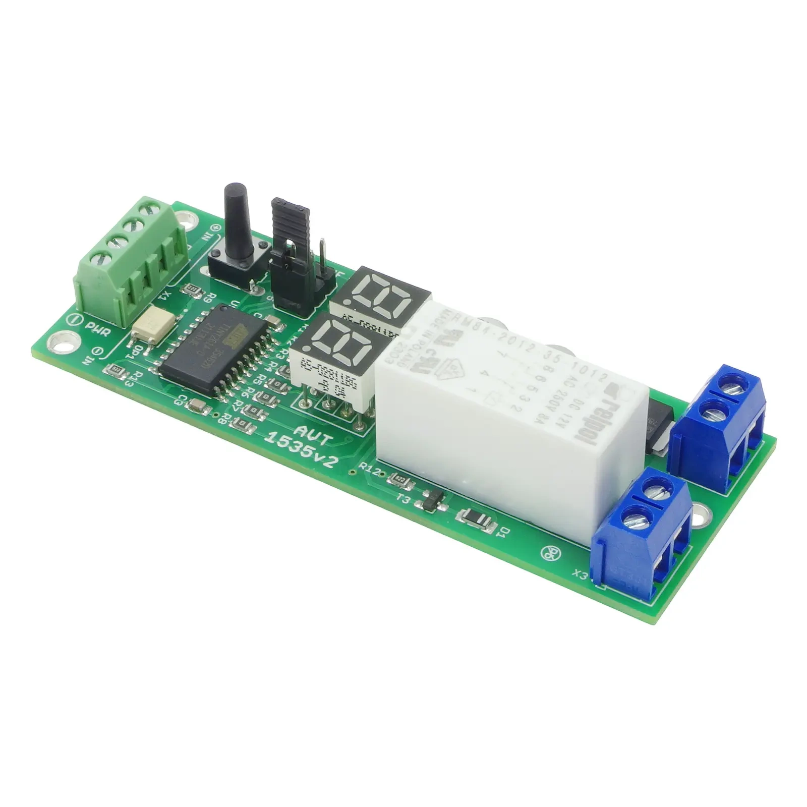 Układ jest przekaźnikowym, Czasowym modułem wykonawczym wyposażonym w kilka praktycznych funkcji: cztery tryby pracy, zakres nastawy czasu 1…99 s, wyjścia NO i NC, wejście sterujące z separacją galwaniczną, wyświetlacz LED - dwie cyfry.