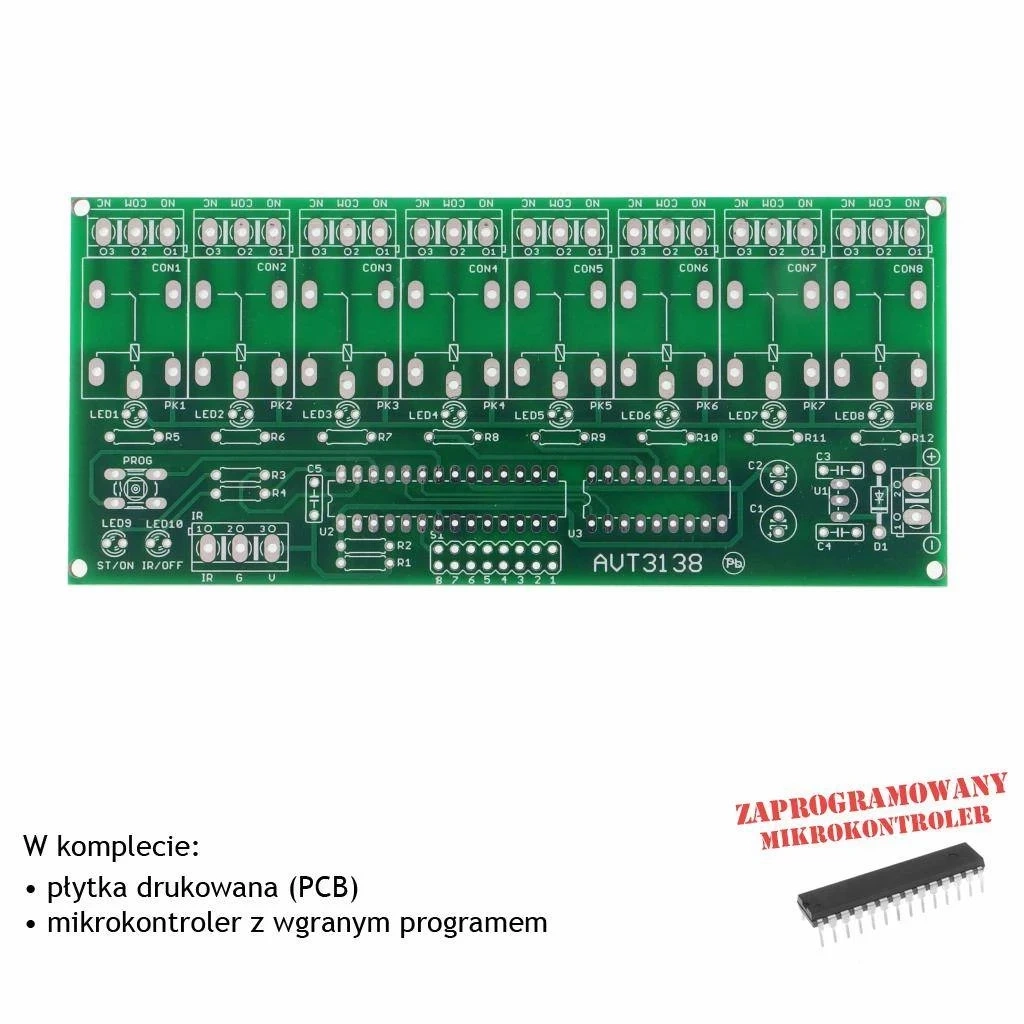 Przełącznik IR 8-kanałowy - maksymalne obciążenie 8A/230V na kanał - PCB i mikroprocesor do projektu AVT 3138