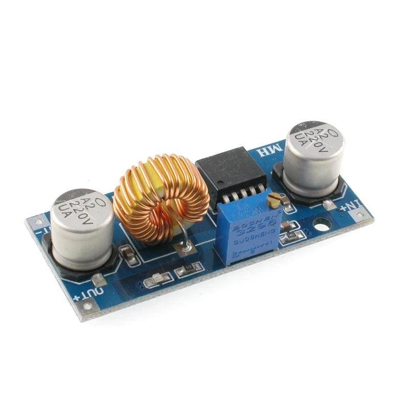 Wysoko prądowa (5A), dowolnie ustawiana przetwornica z napięcia od 4V do 38V - na napięcie regulowane od 1,25V do 36V. Urządzenie to pozwala na bezpieczne, stabilne zasilanie elektroniki, FPV (kamer itp) na stabilizowanym stałym napięciu.