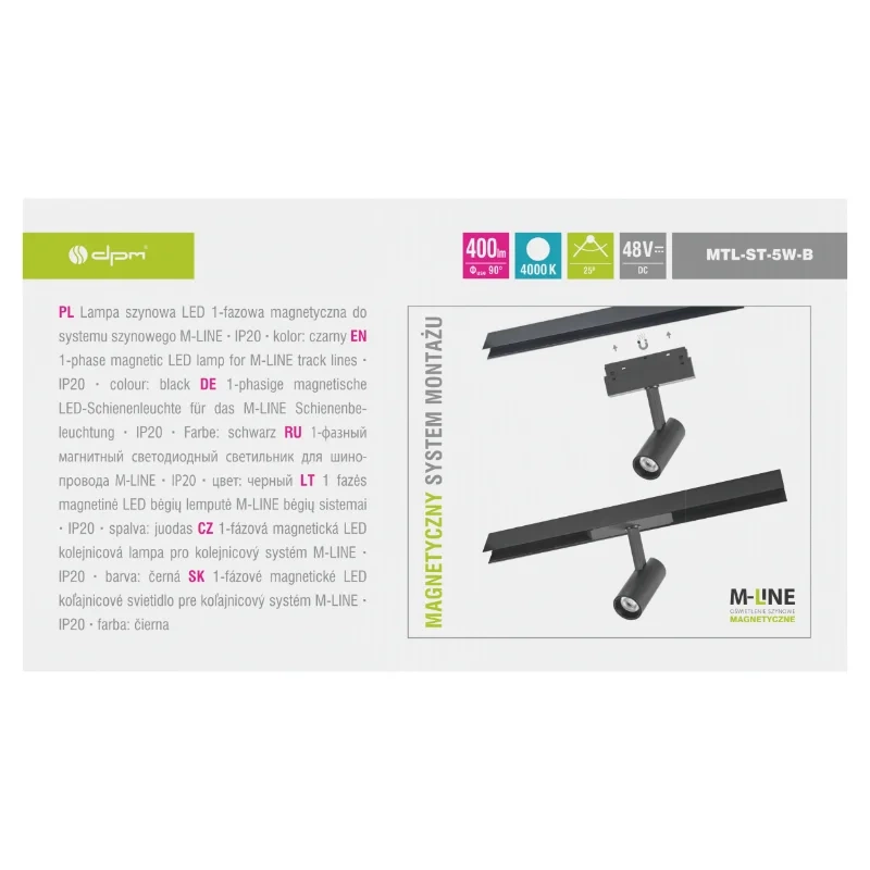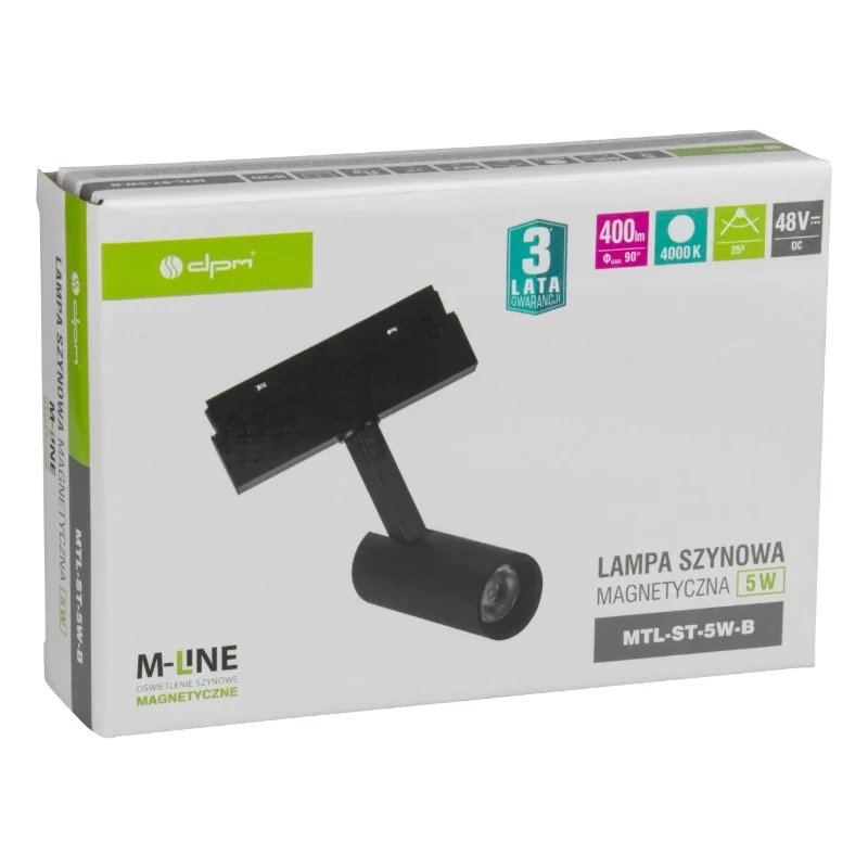 Reflektor szynowy magnetyczny M-LINE MTL-ST-5W to kompaktowa, energooszczędna oprawa LED zaprojektowana do nowoczesnych systemów oświetleniowych M-LINE. Dzięki mocy 5 W i strumieniowi świetlnemu 400 lm zapewnia precyzyjne, neutralne światło o barwie 4000 K, które doskonale sprawdza się w roli oświetlenia akcentowego i dekoracyjnego. Magnetyczny montaż pozwala na szybkie i elastyczne rozmieszczenie reflektorów wzdłuż szyny bez konieczności użycia narzędzi.