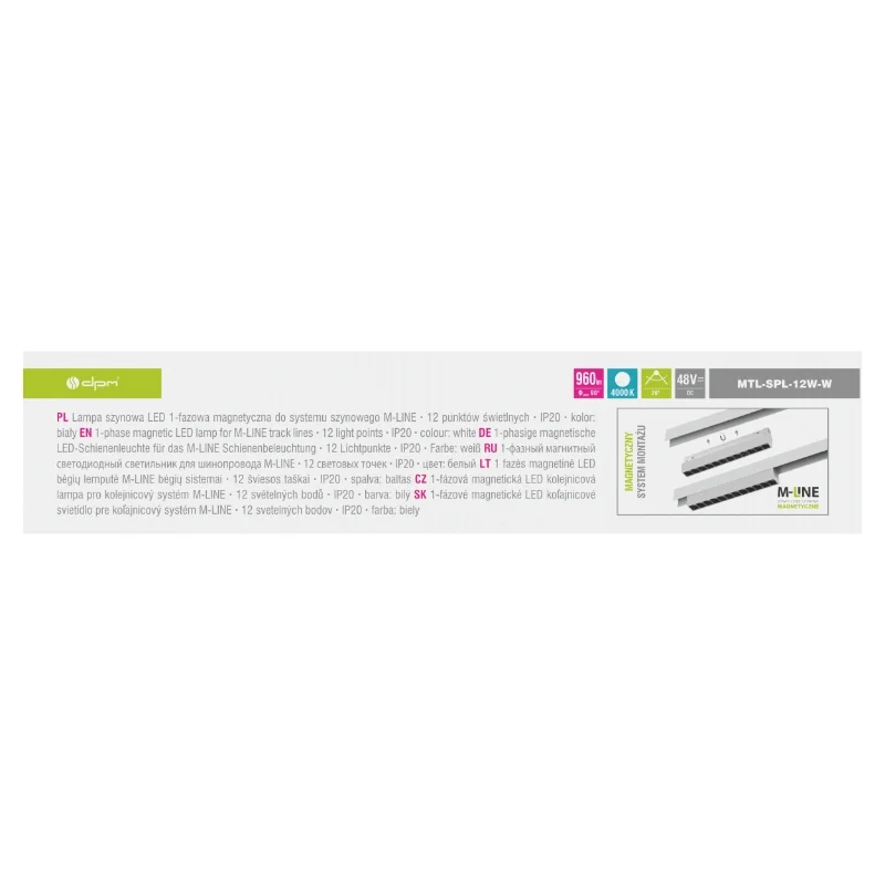 Reflektor magnetyczny M-LINE MTL-SPL-12W to nowoczesna oprawa LED przeznaczona do systemów oświetleniowych M-LINE. Wyróżnia się mocą 12 W, strumieniem świetlnym 960 lm i neutralną barwą światła 4000 K, dzięki czemu zapewnia doskonałe oświetlenie przestrzeni mieszkalnych, biurowych i komercyjnych. Białe, matowe wykończenie podkreśla minimalistyczny i elegancki charakter oprawy.