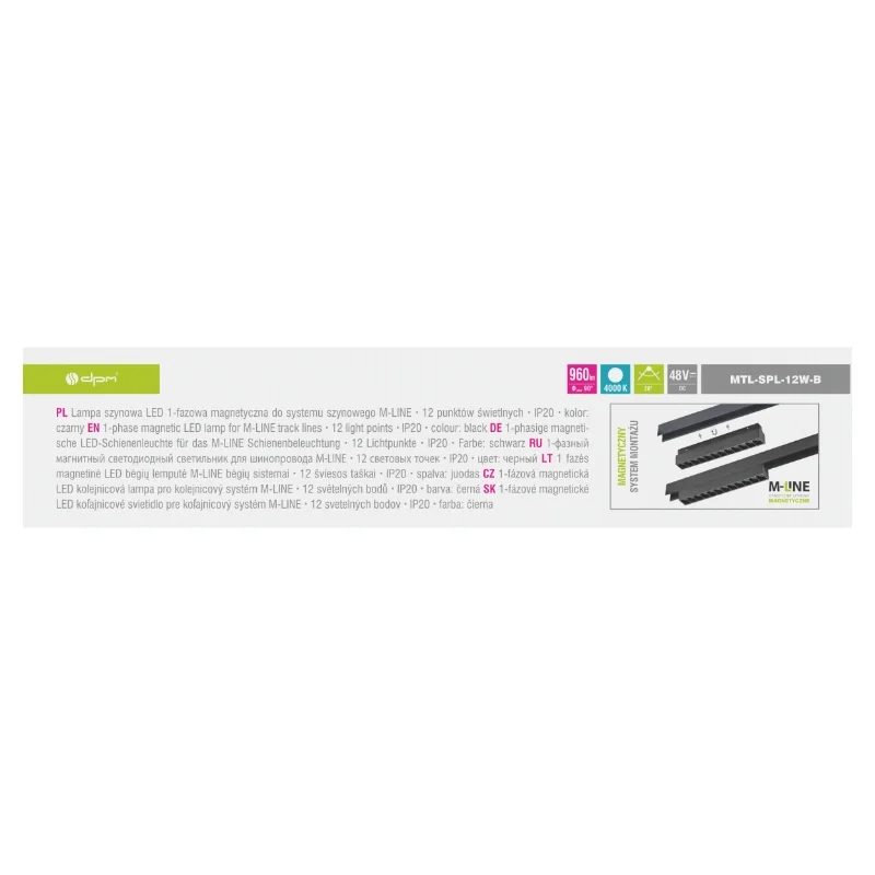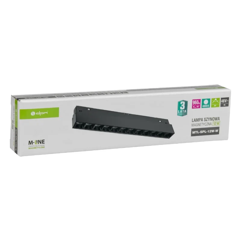 Reflektor magnetyczny M-LINE MTL-SPL-12W to nowoczesna oprawa LED przeznaczona do systemów oświetleniowych M-LINE. Wyróżnia się mocą 12 W, strumieniem świetlnym 960 lm i neutralną barwą światła 4000 K, dzięki czemu zapewnia doskonałe oświetlenie przestrzeni mieszkalnych, biurowych i komercyjnych. Czarne, matowe wykończenie podkreśla minimalistyczny i elegancki charakter oprawy.