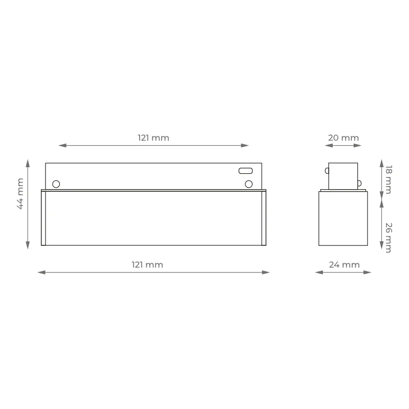 Reflektor wykonany jest z trwałego aluminium, które zapewnia skuteczne odprowadzanie ciepła i zwiększa żywotność diod LED. Smukła konstrukcja o wymiarach 12,1 × 4,4 × 2,4 cm oraz matowe, czarne wykończenie nadają mu elegancki wygląd. Jego minimalistyczna forma idealnie komponuje się z nowoczesnymi wnętrzami, tworząc dyskretne i stylowe źródło światła.