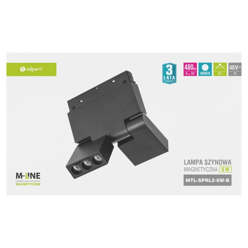 Reflektor szynowy magnetyczny podwójny M-LINE MTL-SPRL2-6W to nowoczesna oprawa LED przeznaczona do systemów oświetleniowych M-LINE. Wyposażona w dwa moduły świetlne o łącznej mocy 6 W i strumieniu 480 lm, emituje przyjemne światło o barwie 4000 K (neutralna biel). Dzięki regulacji w zakresie 180° reflektor umożliwia precyzyjne skierowanie światła tam, gdzie jest potrzebne, zachowując przy tym minimalistyczny, elegancki wygląd.