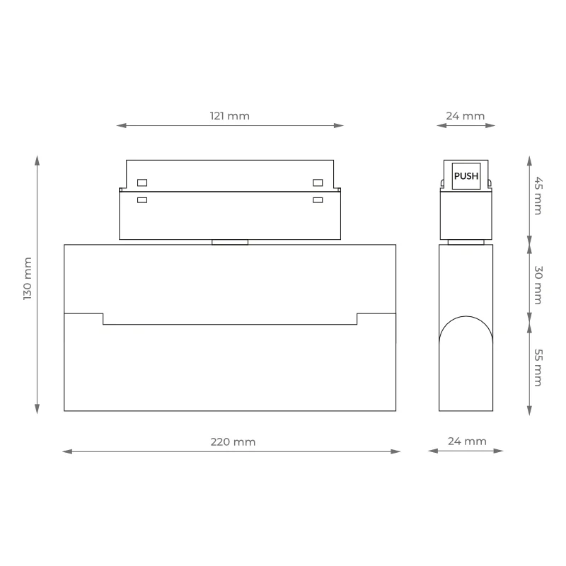 - Rodzaj: reflektor szynowy liniowy regulowany