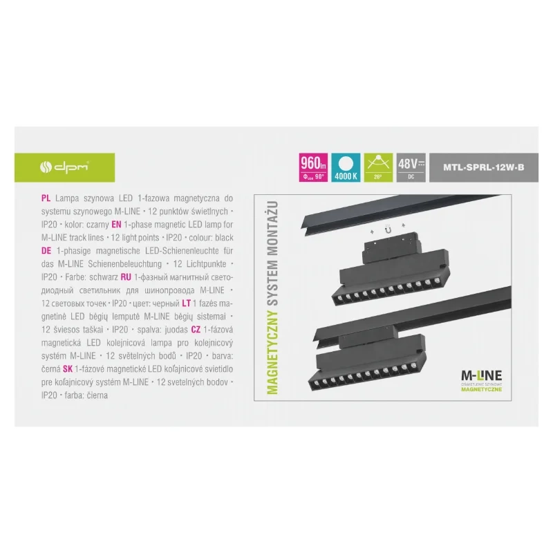 Reflektor szynowy magnetyczny M-LINE MTL-SPRL-12W to profesjonalna oprawa LED o mocy 12 W i strumieniu świetlnym 960 lm, zaprojektowana z myślą o nowoczesnych systemach oświetleniowych M-LINE. Wyposażony w dwukierunkową regulację, umożliwia precyzyjne ustawienie kąta świecenia zarówno w pionie, jak i w poziomie, co pozwala idealnie dopasować oświetlenie do aranżacji wnętrza. Doskonale sprawdza się w nowoczesnych domach, biurach, galeriach oraz przestrzeniach użytkowych.