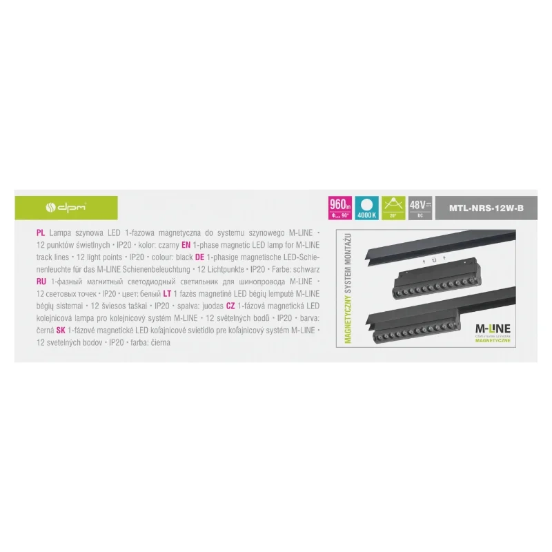 Reflektor szynowy magnetyczny M-LINE MTL-NRS-12W-B to profesjonalna oprawa LED przeznaczona do magnetycznych systemów oświetlenia M-LINE. Dzięki mocy 12 W i neutralnej barwie światła 4000 K zapewnia jasne, naturalne oświetlenie przy zachowaniu wysokiej energooszczędności. Smukła, czarna obudowa i możliwość regulacji kierunku świecenia czynią go idealnym rozwiązaniem do nowoczesnych aranżacji.