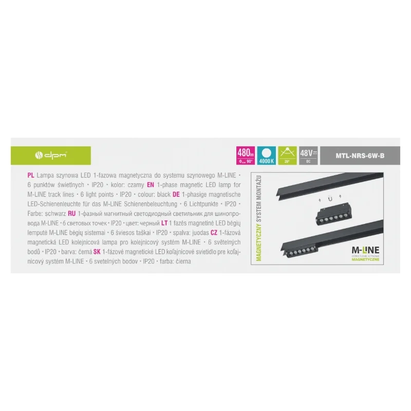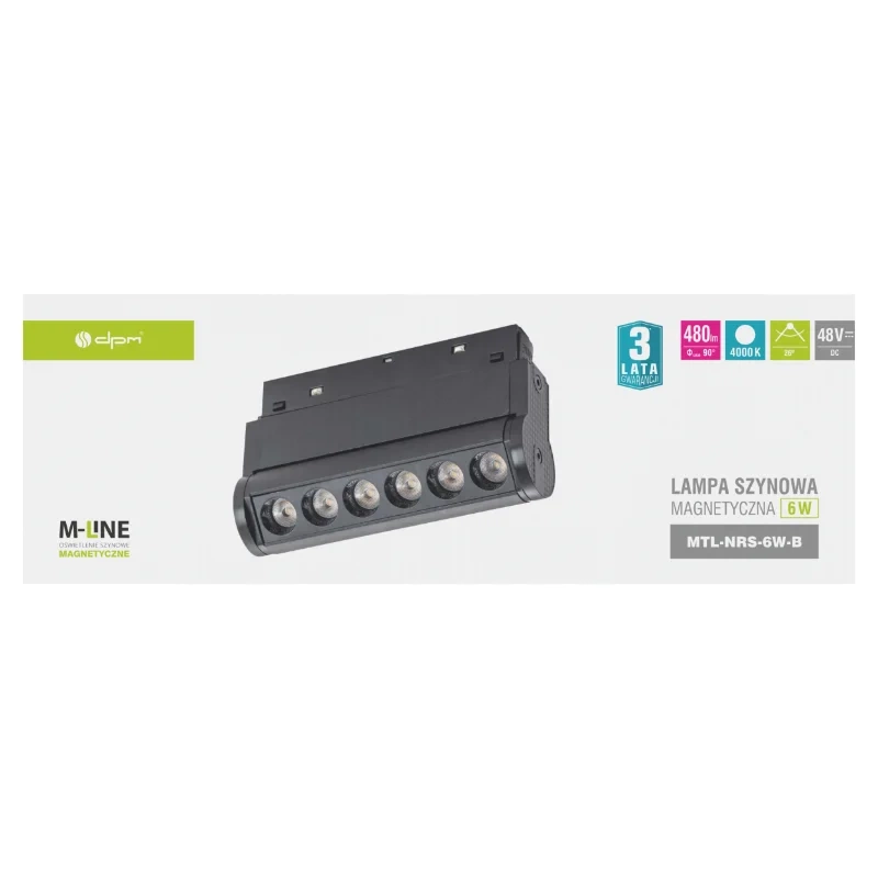 Reflektor szynowy magnetyczny M-LINE MTL-NRS-6W to kompaktowa i wydajna oprawa LED przeznaczona do systemów oświetleniowych M-LINE. Dzięki mocy 6 W, strumieniowi świetlnemu 480 lm i neutralnej barwie światła 4000 K zapewnia precyzyjne i komfortowe oświetlenie w pomieszczeniach mieszkalnych, biurowych i komercyjnych. Czarne, matowe wykończenie i możliwość regulacji kierunku światła czynią z niej uniwersalny element nowoczesnych aranżacji świetlnych.