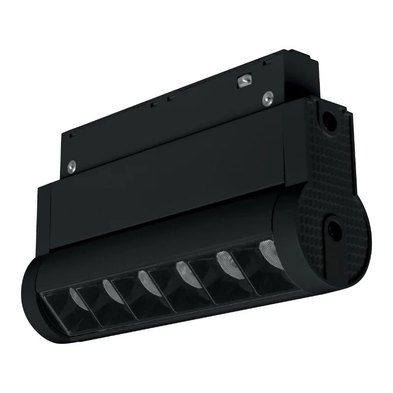 Obudowa reflektora wykonana jest z wysokiej jakości aluminium, które efektywnie odprowadza ciepło i zapewnia trwałość konstrukcji. Smukła forma o wymiarach 12,1 × 7,5 × 3,4 cm w połączeniu z matowym, czarnym wykończeniem nadaje oprawie nowoczesny i profesjonalny wygląd. Konstrukcja reflektora zapewnia łatwy montaż magnetyczny i bezpieczne połączenie z szyną zasilającą.