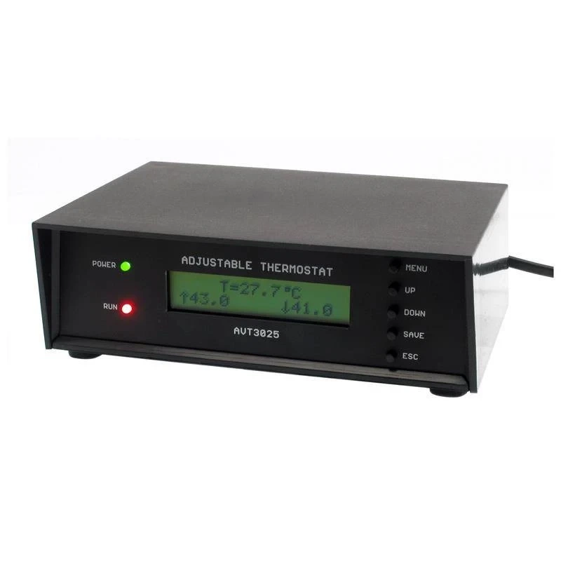 Do termostatu AVT3025 został zaprojektowany panel przedni - płyta czołowa o wymiarach 44x147mm. Taka maskownica w formie płytki drukowanej ułatwi montaż układu w obudowie KM50. Na tylnej stronie panelu umieszczone są pola lutownicze do których można dolutować śrubki lub grubszy drut a następnie przykręcić lub przylutować do płytki sterownika.