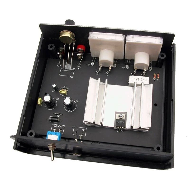 - wbudowane zabezpieczenia przeciwprzeciążeniowe i przeciwzwarciowe (układ LM338)