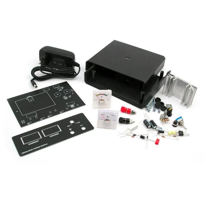 AVT ZASILACZ to rozszerzona aplikacja układu LM338. Zasilany bezpiecznym napięciem z przeznaczeniem do wszelkich prac w warsztacie, szkole czy domowym laboratorium. Wyposażony został w dwa podświetlane mierniki: prądu (CURRENT) oraz napięcia (VOLTAGE).