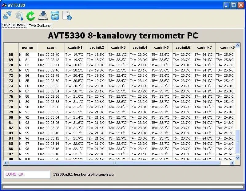 Opinie o Rejestrator temperatury 8-kanałowy USB z 2 czujnikami DS18B20 - KIT AVT 5330