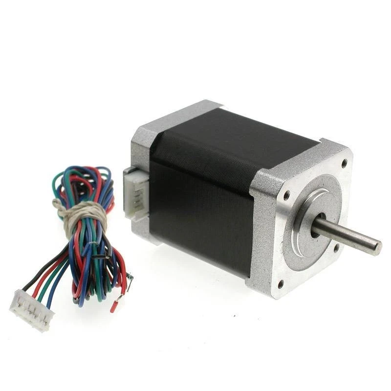 - Wymiary obudowy: Liczby w oznaczeniu NEMA (np. NEMA 17, NEMA 23) odnoszą się do wymiarów czołowej płyty silnika w calach.