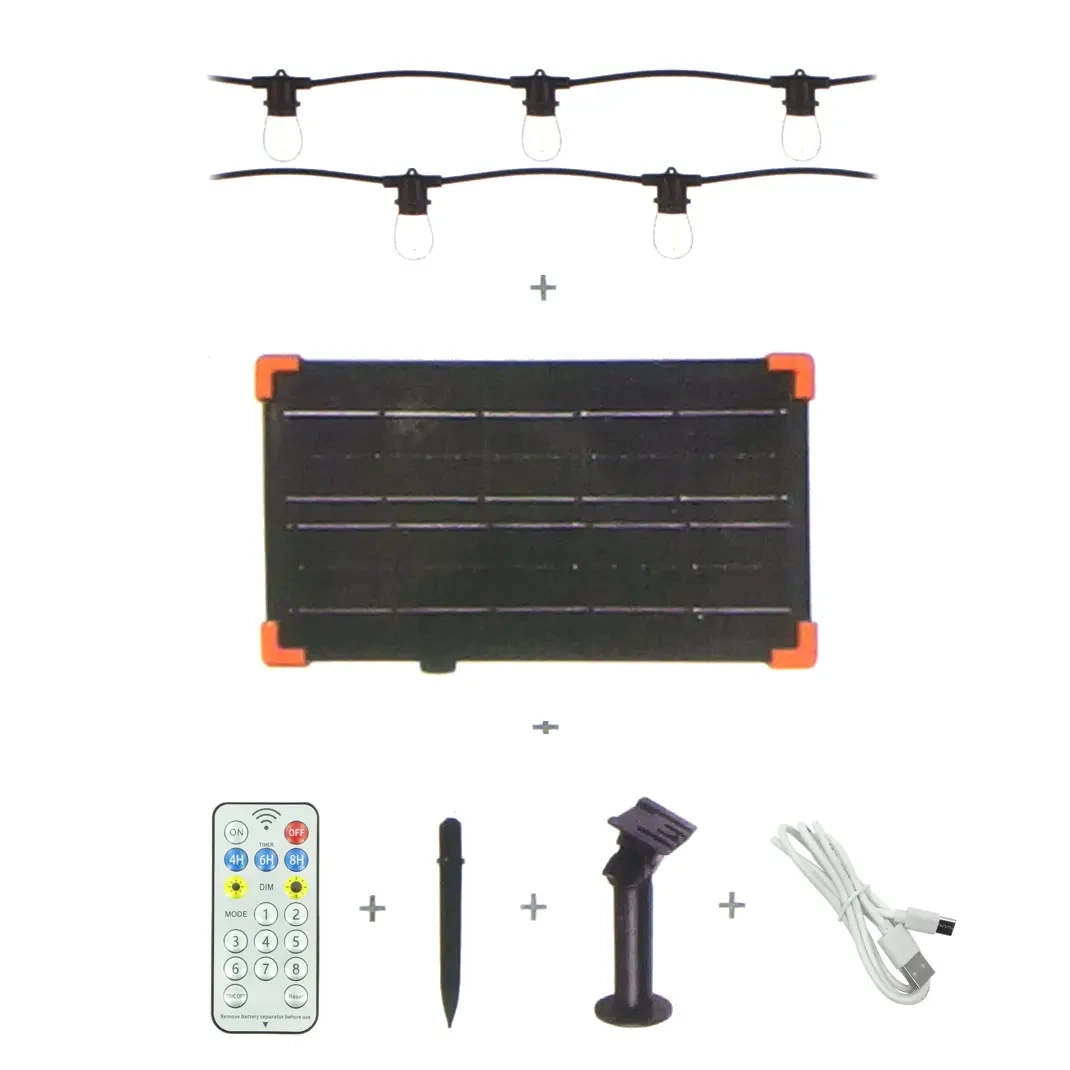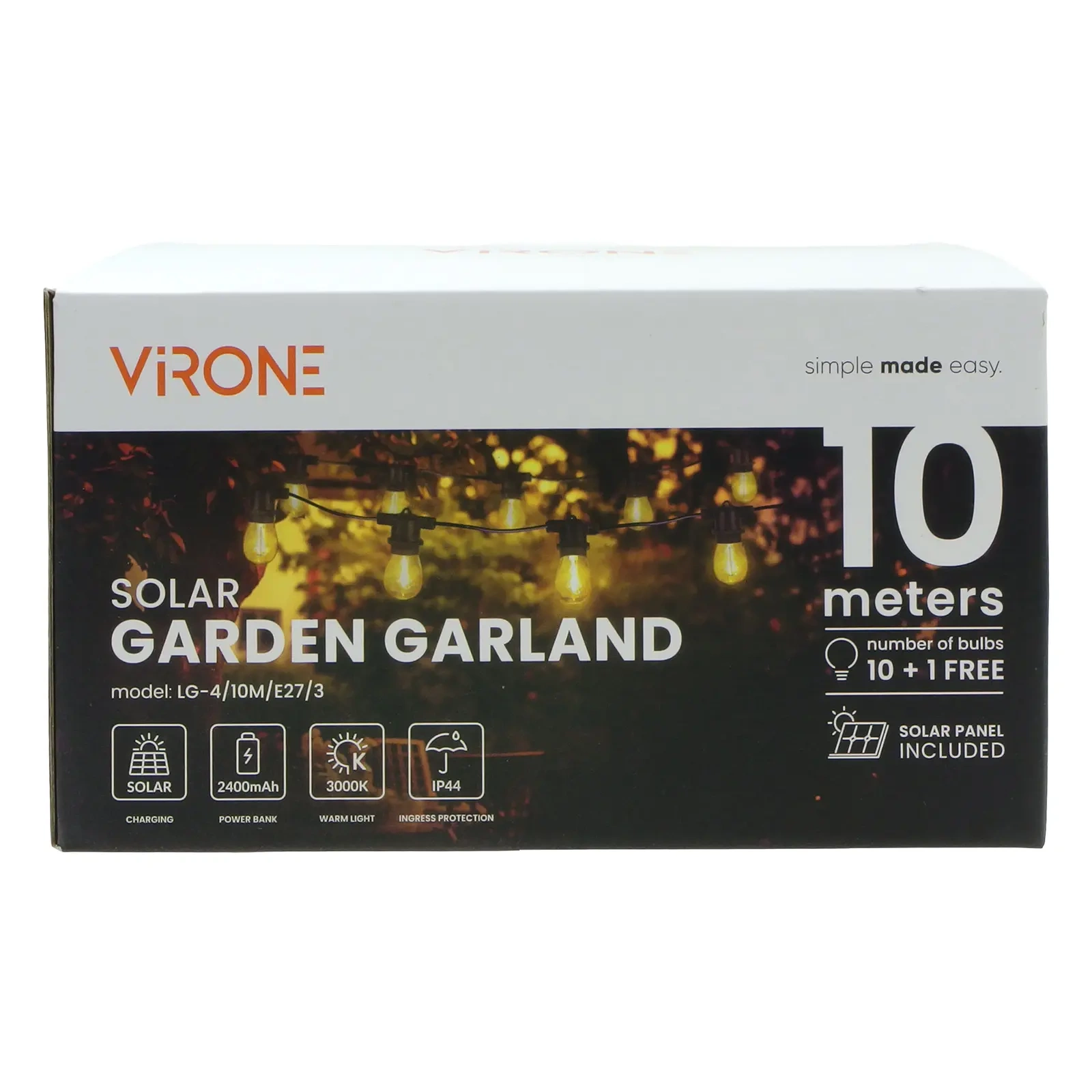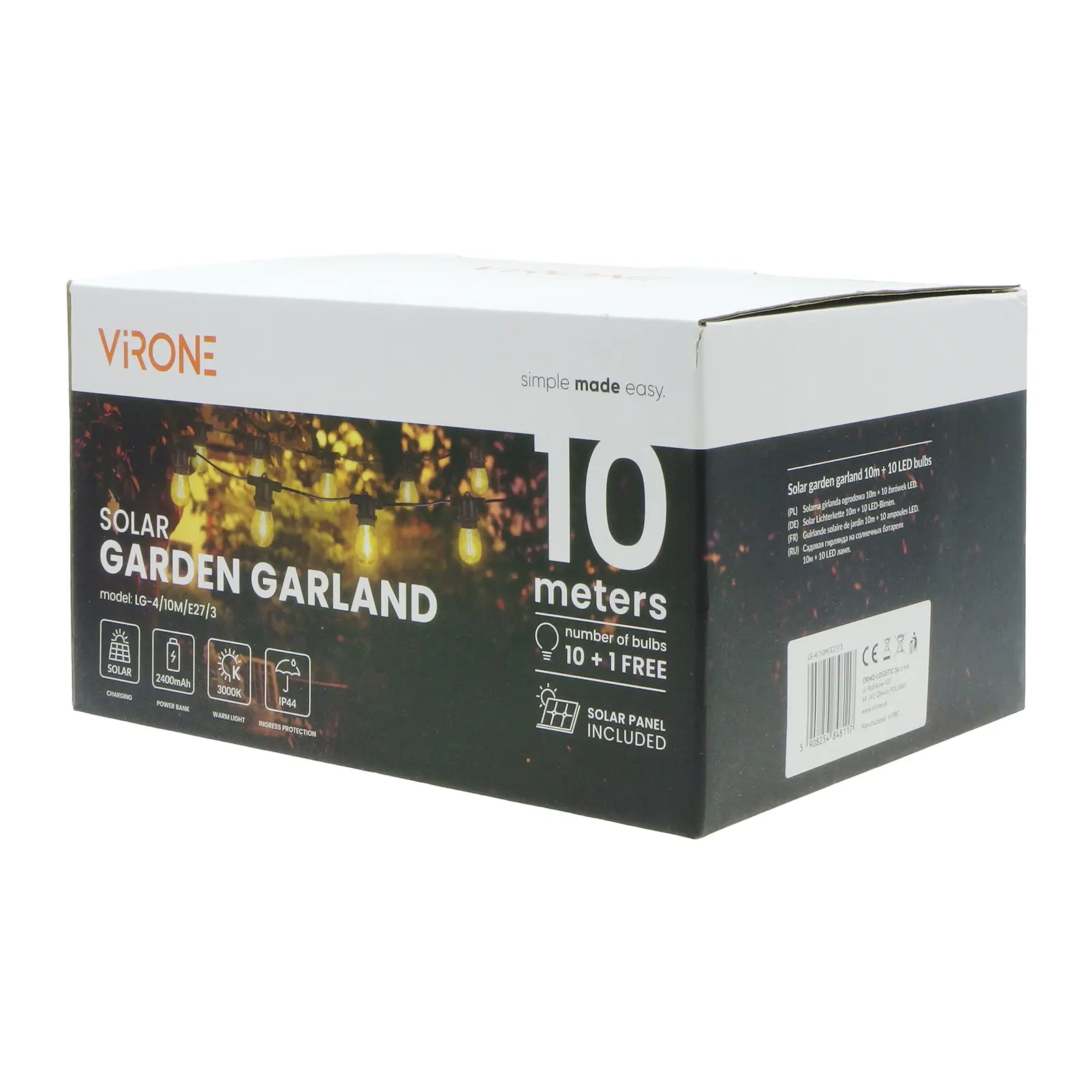 Girlanda solarna LED E27 10m – dekoracyjne oświetlenie ogrodowe bez podłączenia do prądu