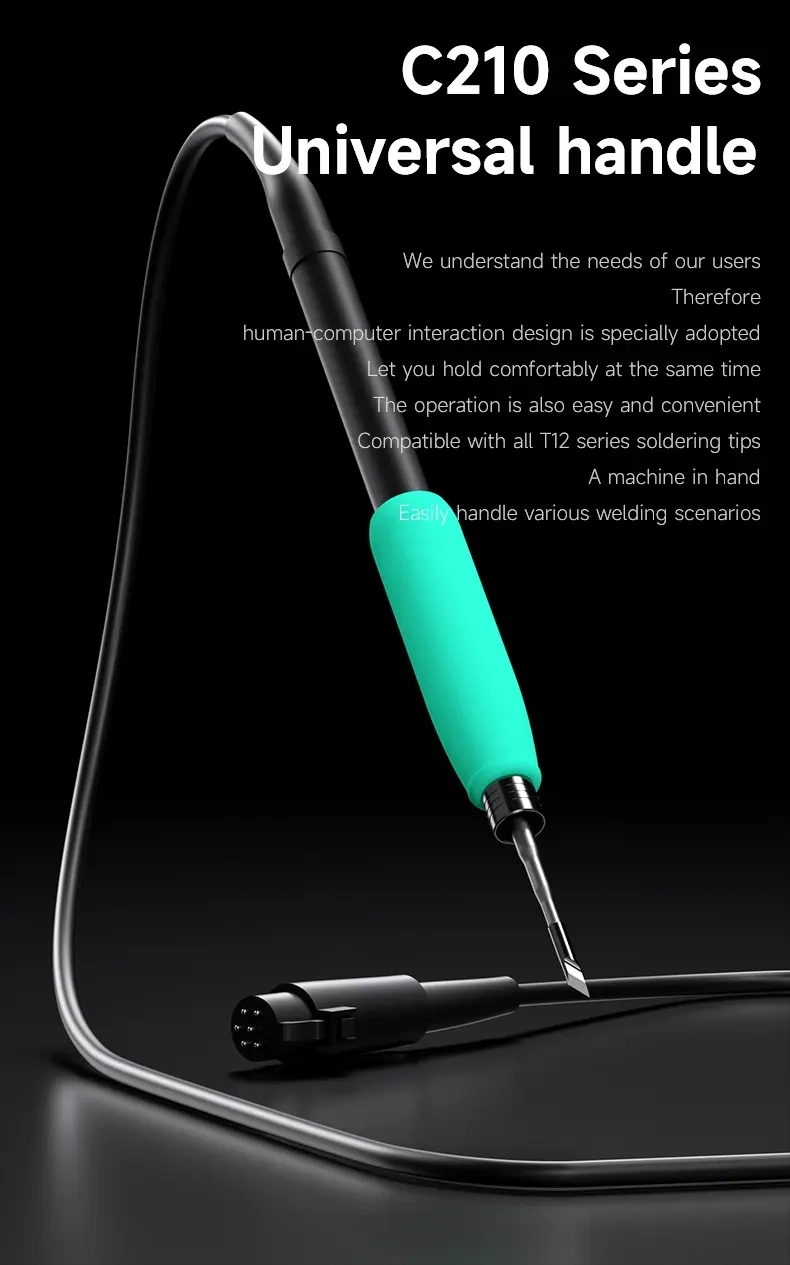 Grot serii C210 jest wyposażony w czujnik temperatury znajdujący się bardzo blisko końcówki, dzięki czemu kontrola nad przyłożonym ciepłem jest znacznie lepsza niż w tradycyjnych kolbach. Algorytmy w stacji A210 dynamicznie reagują na zmiany obciążenia termicznego, co pozwala osiągnąć płynną i stabilną pracę nawet przy lutowaniu mas i ekranów.