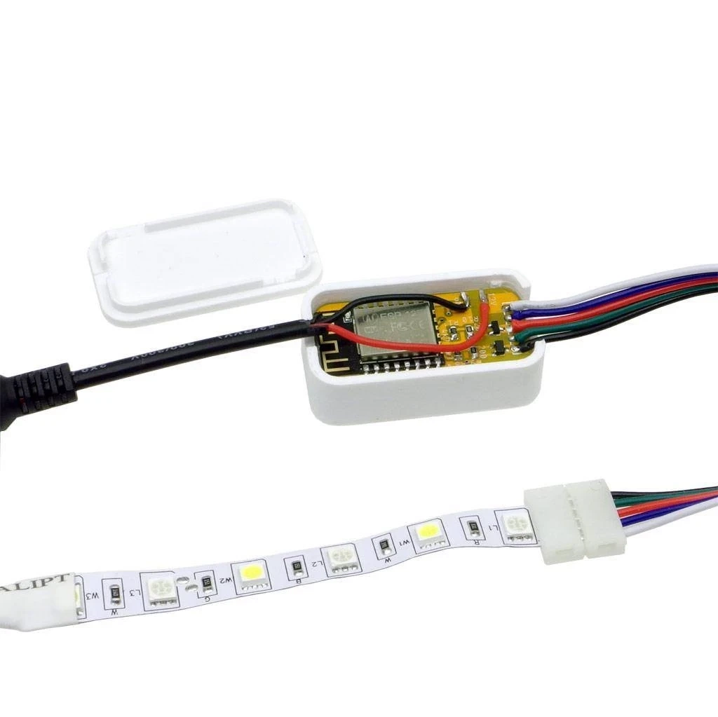 Sterownik taśm LED RGB + biały. Jednostką sterującą urządzeniem jest moduł ESP8266, układ jest zgodny z projektem HomeKit