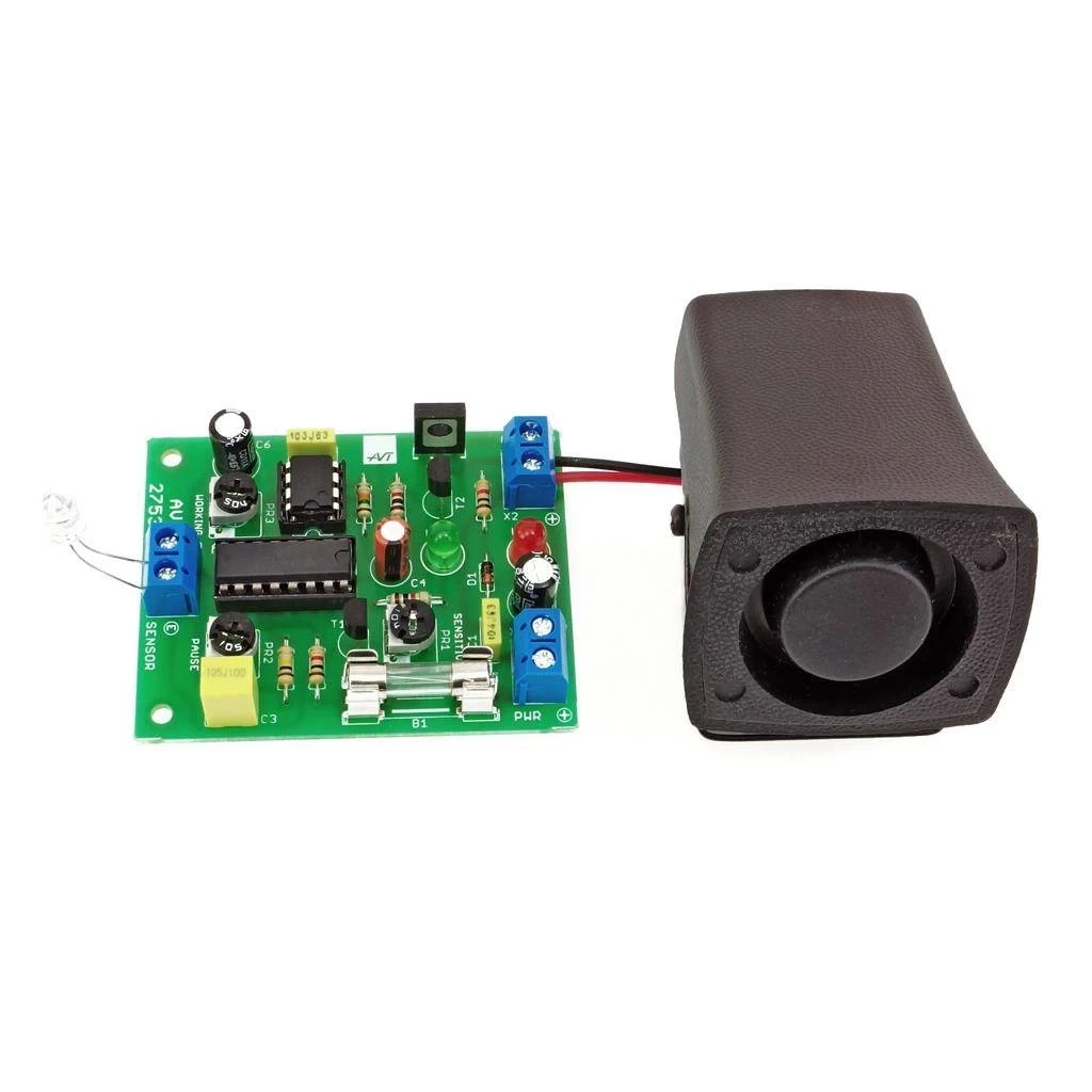 Każdy posiadacz choćby tylko kilku drzew czereśniowych bądź wiśniowych spotkał się z poważnym problemem ochrony owoców przed szpakami. Te miłe skądinąd ptaki potrafią w ciągu nawet jednego dnia zjeść wszystkie smakowite owoce. Prezentowany kit jest urządzeniem generującym w określonych odstępach czasu przeraźliwy dźwięk, który odstrasza latające szkodniki. Układ wyposażono we włącznik zmierzchowy tak więc można być pewnym, że sen właściciela sadu nie zostanie zakłócony. Autonomia działania sprawia, iż strach na szpaki może pracować bez nadzoru cały sezon. Pamiętać jedynie należy o kontroli poziomu naładowania źródła zasilania (akumulatora).