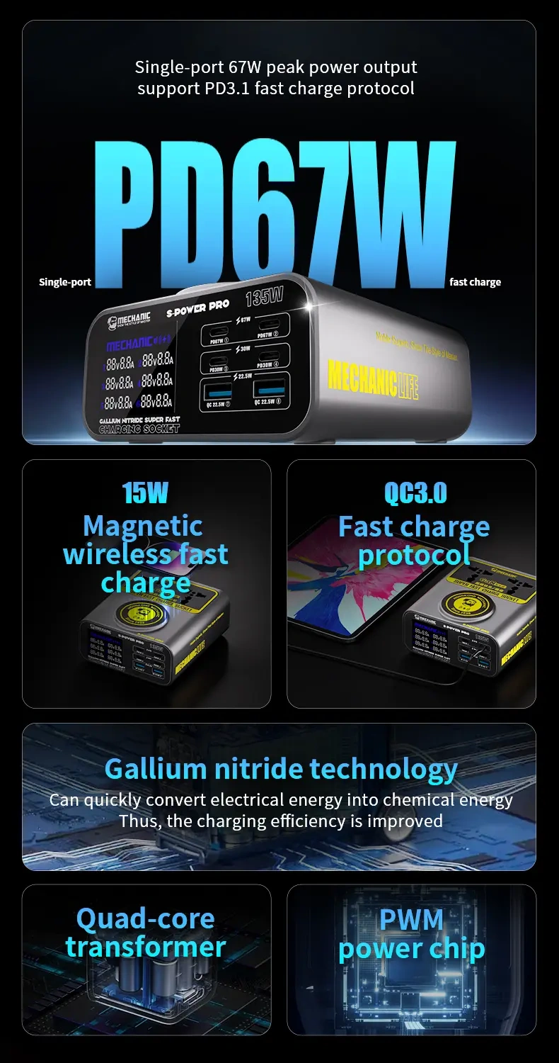 Super szybka stacja ładowania 135W GaN S-POWER PRO Mechanic⚡
