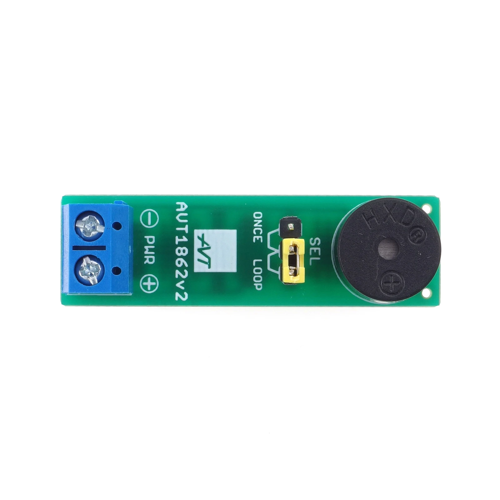 Układ sygnalizatora akustycznego, który po dołączeniu do napięcia zasilania generuje sygnał dźwiękowy. Może to być krótka, pojedyncza sekwencja dźwiękowa albo cykliczne jej powtarzanie, aż do momentu wyłączenia zasilania. Urządzenie doskonale sprawdzi się, jako alternatywa popularnych buzzerów tonu ciągłego sygnalizując krótkotrwałym sygnałem dźwiękowym zaistnienie jakiegoś zdarzenia.