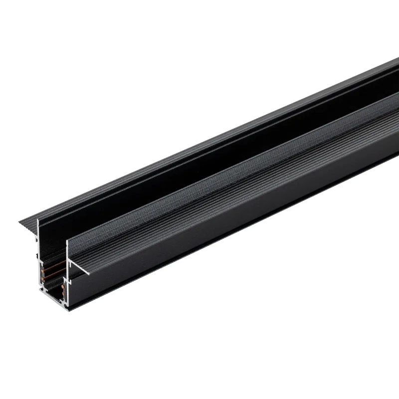 Szyna magnetyczna 1-fazowa podtynkowa 1 m z serii DPM M-LINE to nowoczesny element systemu oświetleniowego, zaprojektowany do tworzenia estetycznych i elastycznych instalacji świetlnych w sufitach podwieszanych lub zabudowie gipsowo-kartonowej. Klasyczny, czarny profil aluminiowy pozwala uzyskać efekt wbudowanego oświetlenia o minimalistycznym charakterze, idealnego do wnętrz mieszkalnych i komercyjnych.