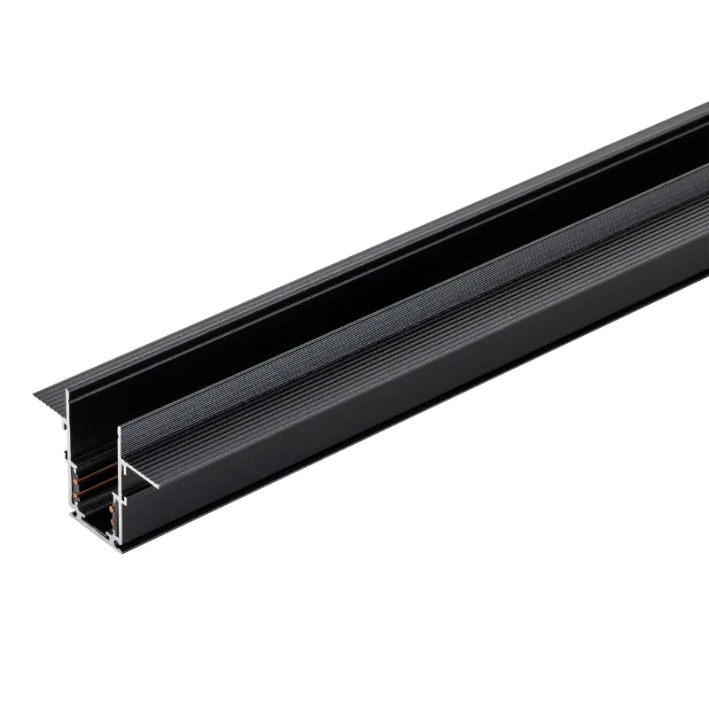 Szyna magnetyczna 1-fazowa podtynkowa 2 m z serii DPM M-LINE to nowoczesny element systemu oświetleniowego, zaprojektowany do tworzenia estetycznych i elastycznych instalacji świetlnych w sufitach podwieszanych lub zabudowie gipsowo-kartonowej. Klasyczny, czarny profil aluminiowy pozwala uzyskać efekt wbudowanego oświetlenia o minimalistycznym charakterze, idealnego do wnętrz mieszkalnych i komercyjnych.
