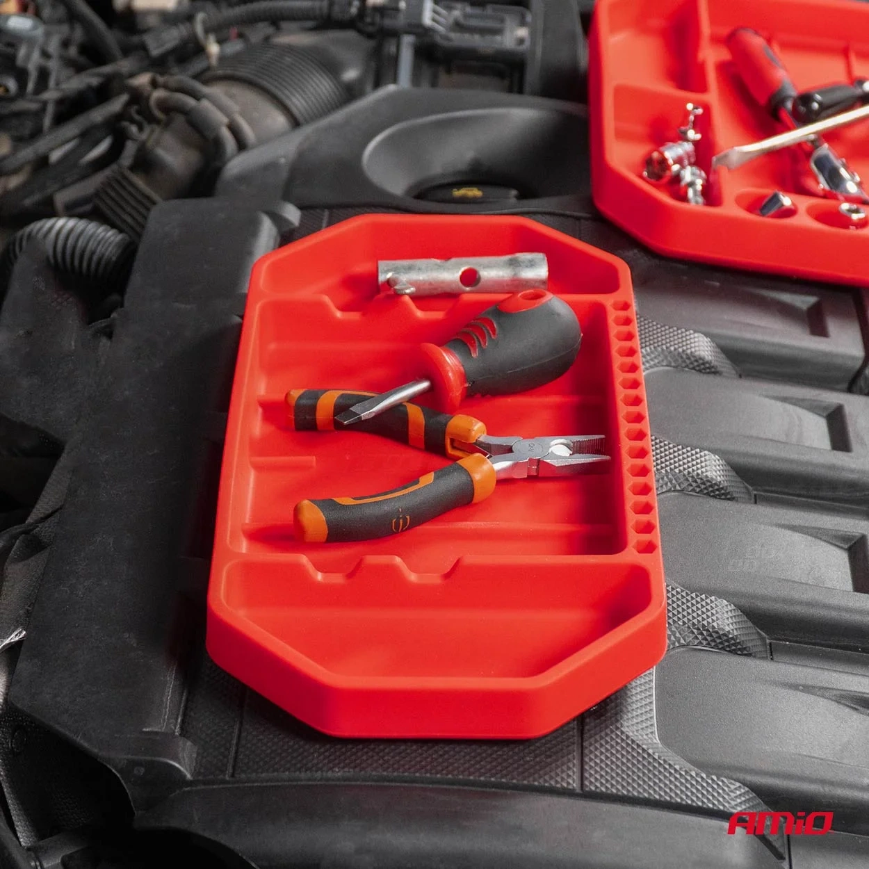Mała taca silikonowa warsztatowa to doskonałe narzędzie do przechowywania drobnych elementów, narzędzi i akcesoriów podczas pracy w warsztacie, garażu czy podczas majsterkowania. Wykonana z elastycznego, odpornego na uszkodzenia silikonu, taca zapewnia bezpieczeństwo przechowywanych przedmiotów, a jej antypoślizgowe właściwości gwarantują stabilność. Jest to świetne rozwiązanie, które pomoże utrzymać porządek na stanowisku roboczym, zapobiegając zgubieniu małych części.