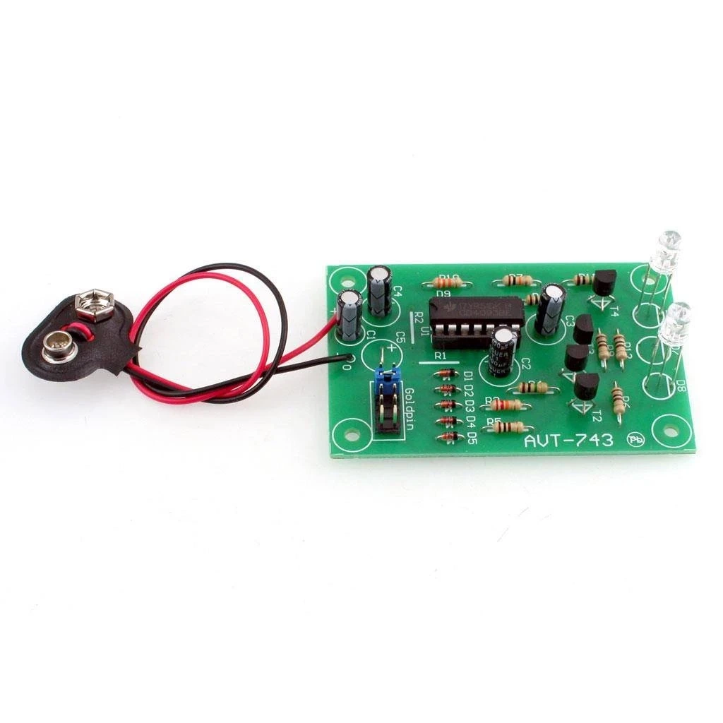 Kit zawiera trójkolorową diodę LED lub (alternatywnie) dwie dwukolorowe. Trzy niezależne generatory płynnie modulują jasność a mieszanie różnych kolorów światła daje niecodzienne efekty wizualne. Zamiast obserwować bezpośrednio źródło światła warto „tajemniczym blaskiem” oświetlić białą płaszczyznę lub białą, półprzeźroczystą płytkę np. z plexi. Najlepsze efekty uzyskuje się gdy poszczególne diody podczas cyklu nie gasną całkowicie a jedynie przygasają. Układ jest bardzo prosty w montażu i uruchomieniu.