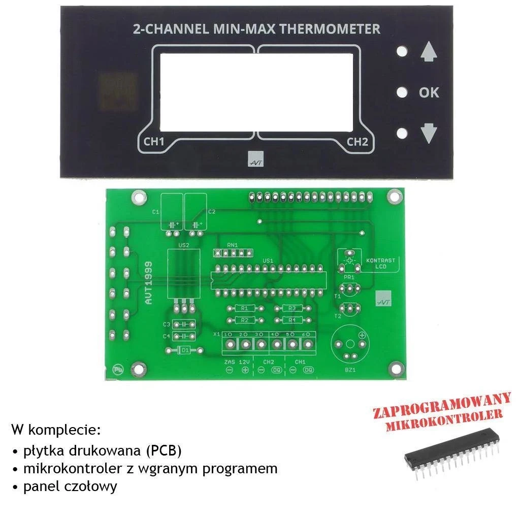 Termometr służy do monitorowania temperatury w dwóch punktach za pomocą czujników temperatury typu DS18B20 z interfejsem 1-Wire.