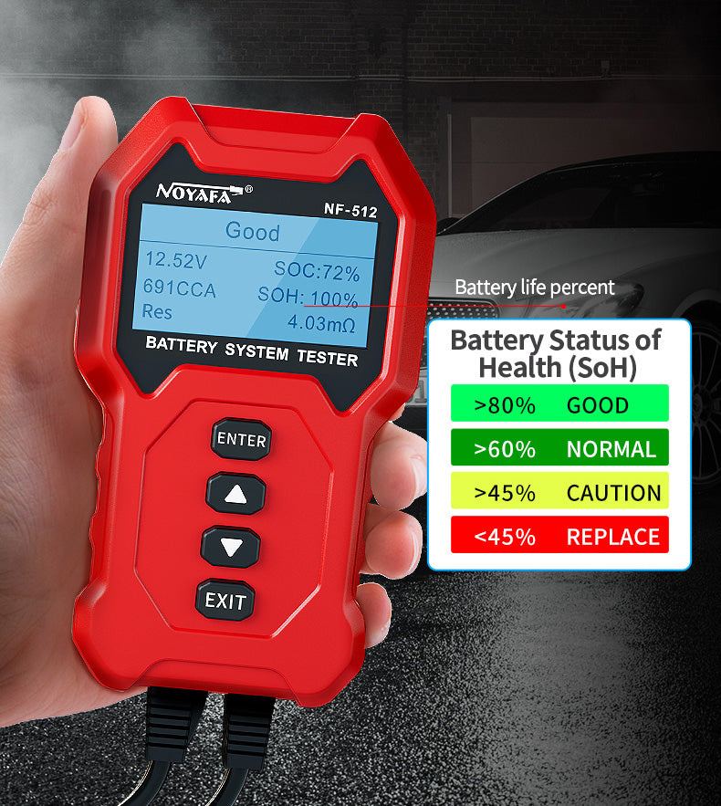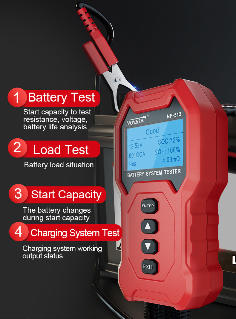 NOYAFA NF-512 to niezawodne, wszechstronne i łatwe w obsłudze narzędzie diagnostyczne, które pomaga w szybkim i dokładnym testowaniu akumulatorów oraz systemów ładowania.