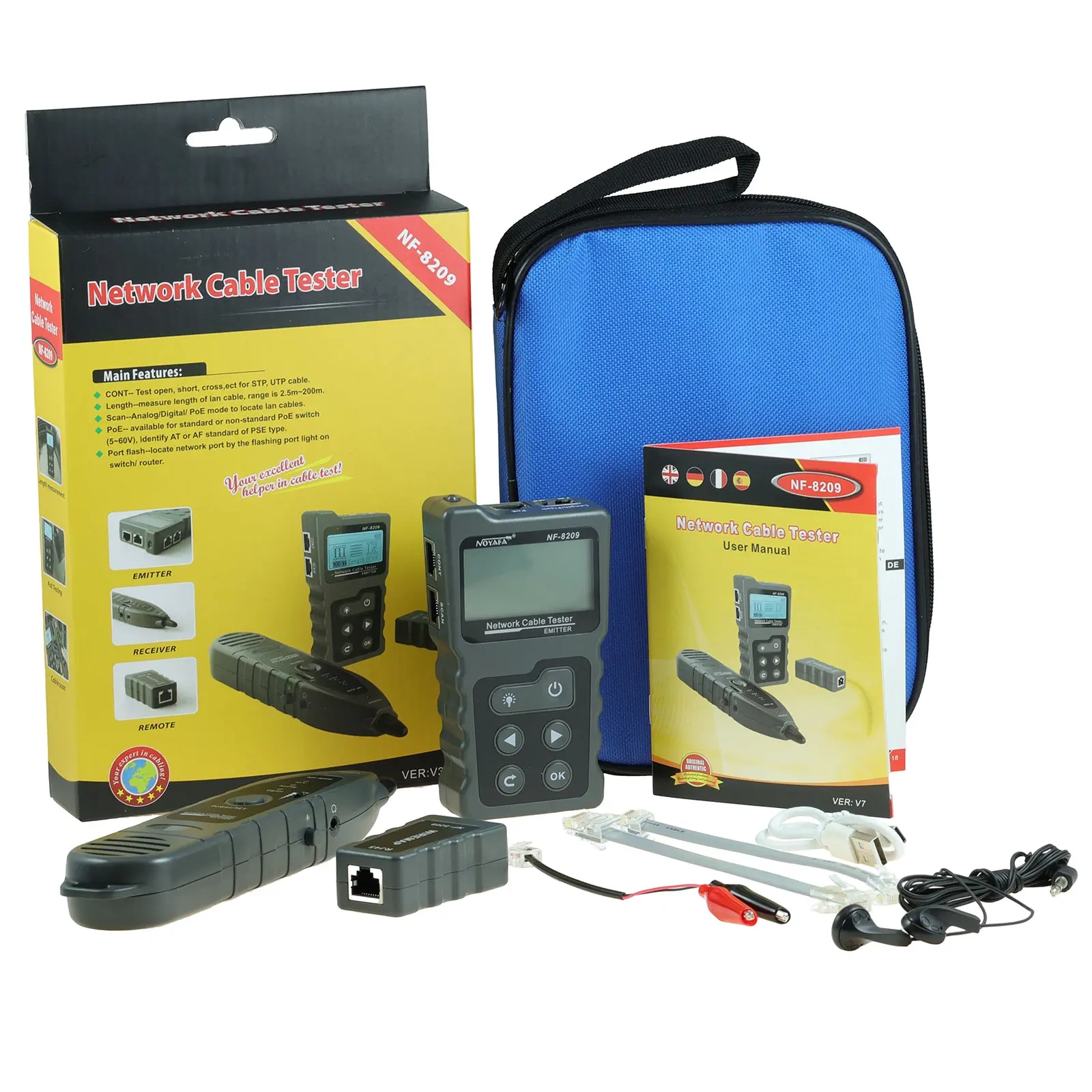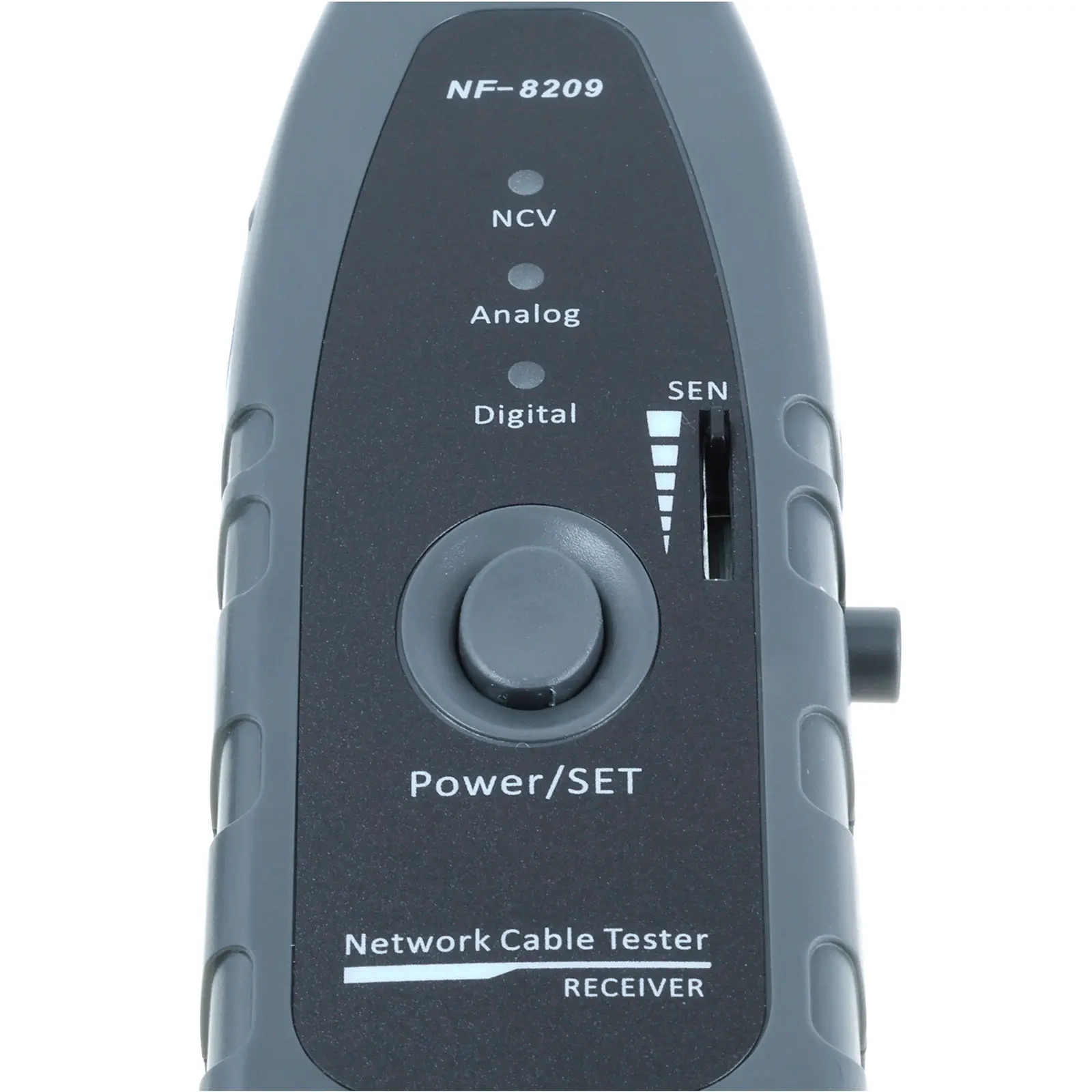 Tester okablowania NF-8209 to niewielki tester o zaawansowanych funkcjach. Umożliwia test poprawności połączenia wykrywając takie uszkodzenia jak przerwa, zwarcie, odwrócone pary. Dodatkowo wyposażony jest w generator sygnału oraz szukacz par, dzięki czemu umożliwia wyszukanie konkretnego przewodu w plątaninie kabli.