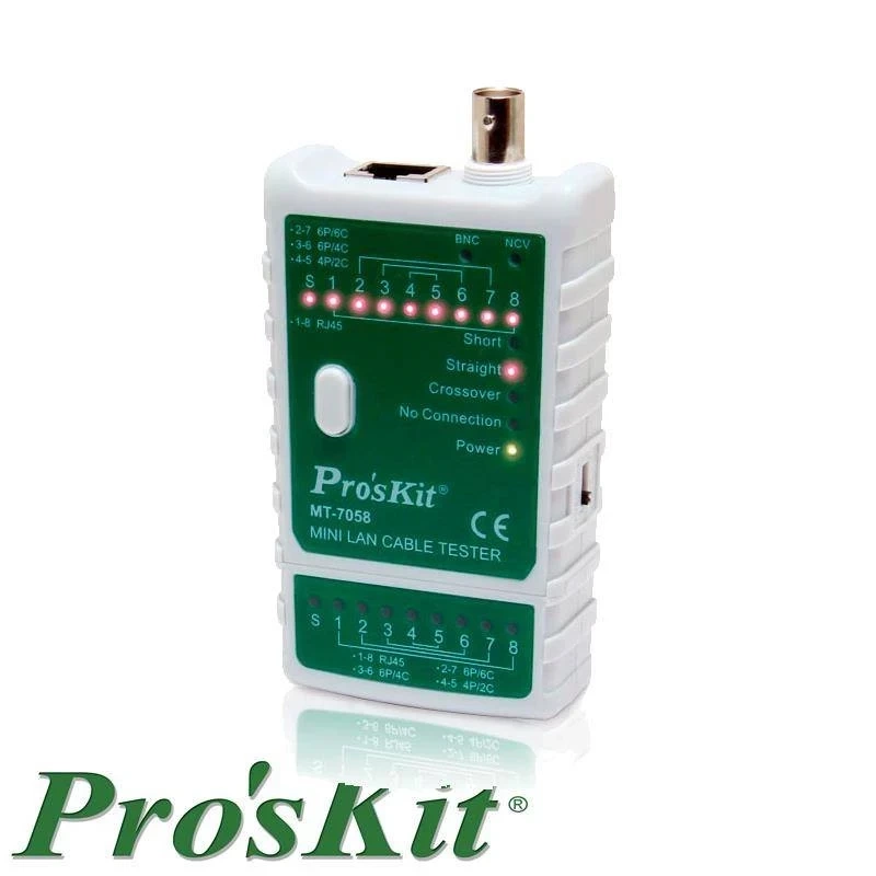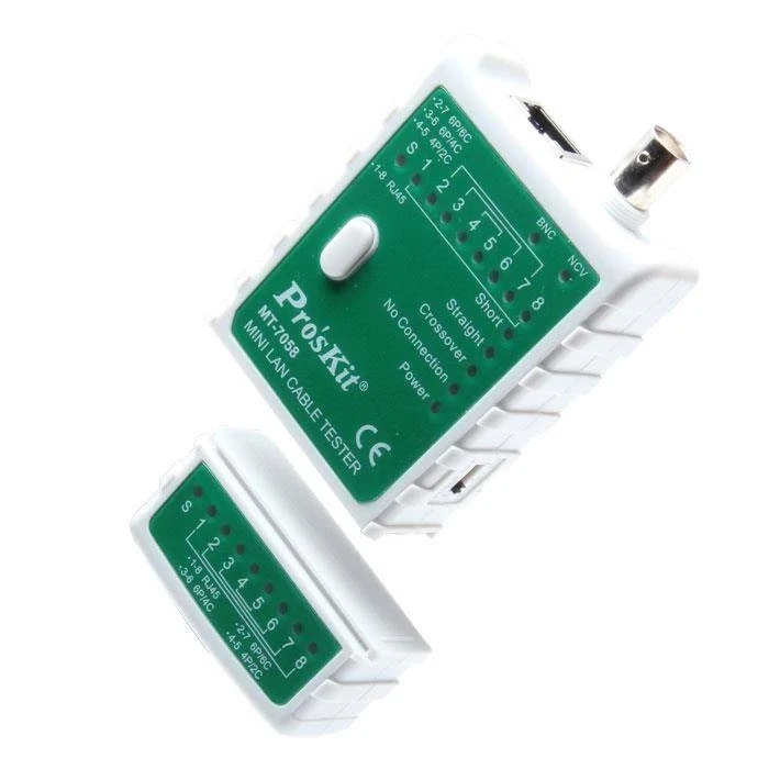 Tester sieci LAN kat.5 MT-7058 Proskit. Tester okablowania LAN niezastąpiony w trakcie montażu i serwisu. Przeznaczony do sprawdzania połączeń komputerowych a także telefonicznych.