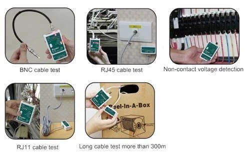 - test: RJ45 TIA568A/B (AT&T) 258A), 10 Base-T, Token Ring, RJ-11/RJ-12 USOC oraz BNC