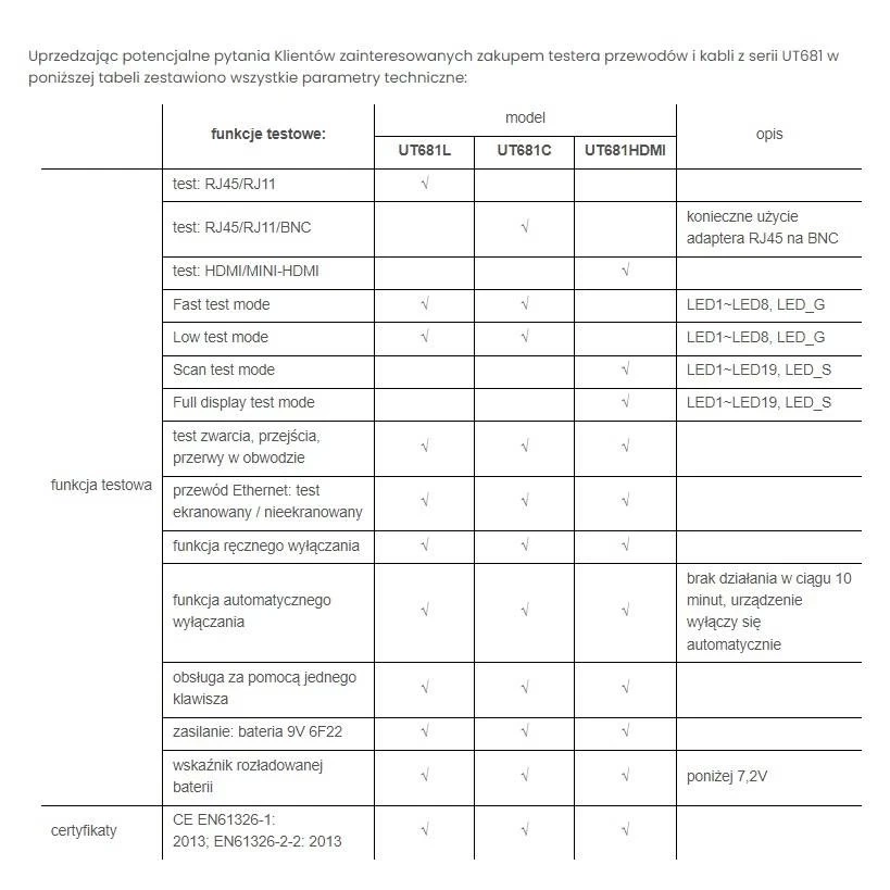 Miernik, tester przewodów, kabli sieciowych RJ45 RJ11 UT681L UNI-T